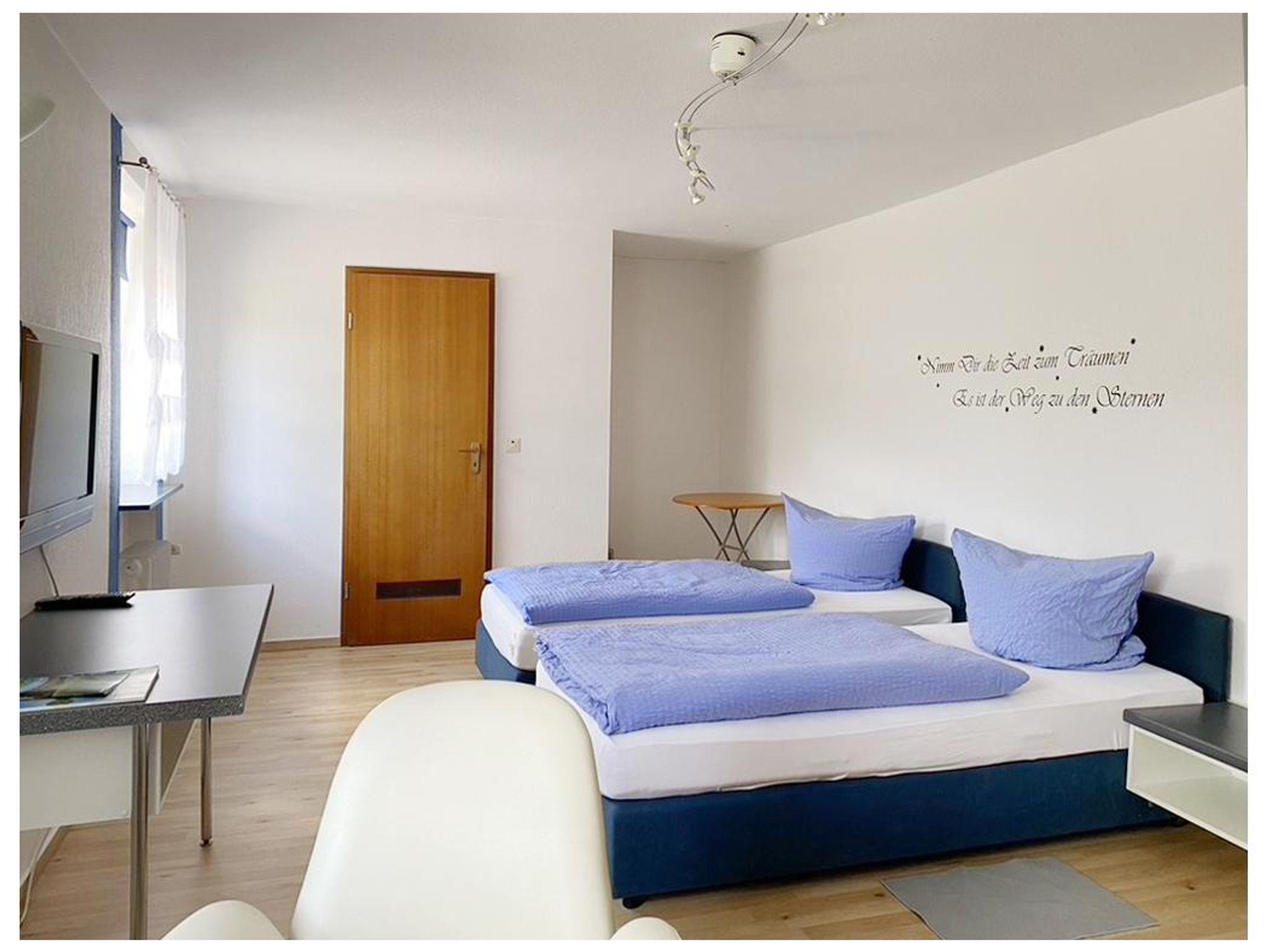 Modern eingerichtete Zimmer mit Dusche und WC, Sat-TV und WLAN. Das Bett ist 2,00 m breit. Mit einer zusätzlichen Matratze kann es auch als Drei-Bett-Zimmer genutzt werden. Eine Sitzecke mit Tischen und Stühlen ist ebenfalls vorhanden. Zimmer Nr. 2 verfügt über 2 separate Dusche/WC.