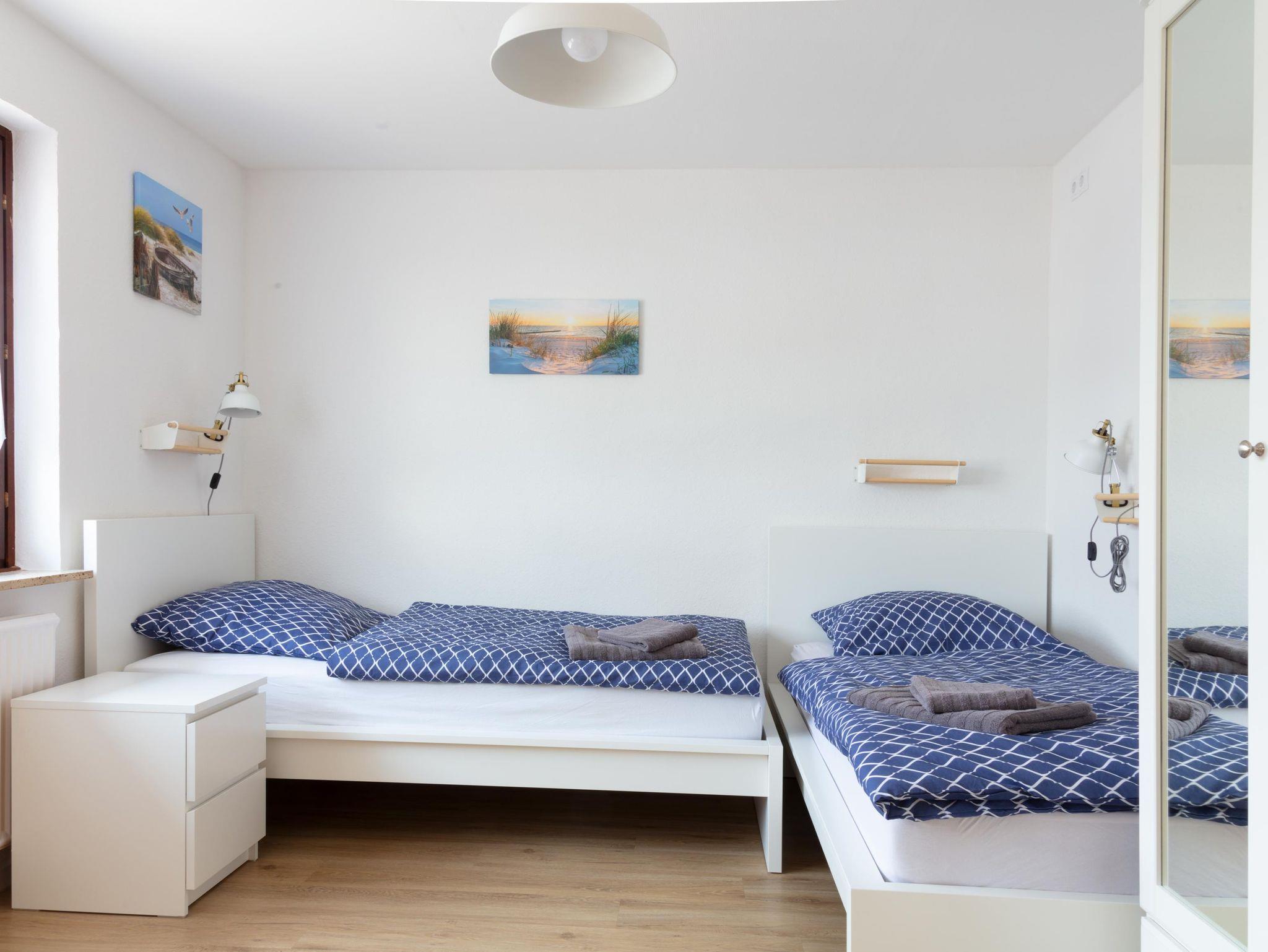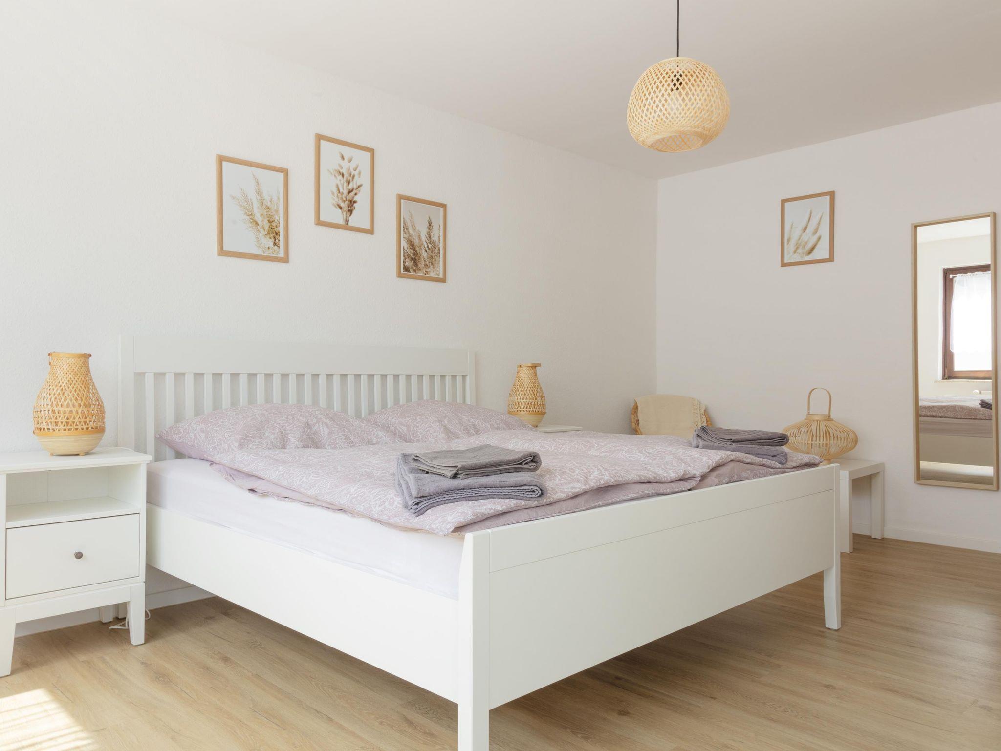 Das Ferienhaus verfügt über zwei Etagen. In der oberen Etage befinden sich zwei Schlafzimmer mit Doppelbetten, ein weiteres Schlafzimmer mit zwei Einzelbetten und ein Badezimmer mit Badewanne und WC. In der unteren Etage befindet sich das Wohnzimmer, Esszimmer, Küche, ein Bad mit Dusche und WC, sowie eine Sonnenterrasse mit Zugang zum eigenen, kleinen Garten.