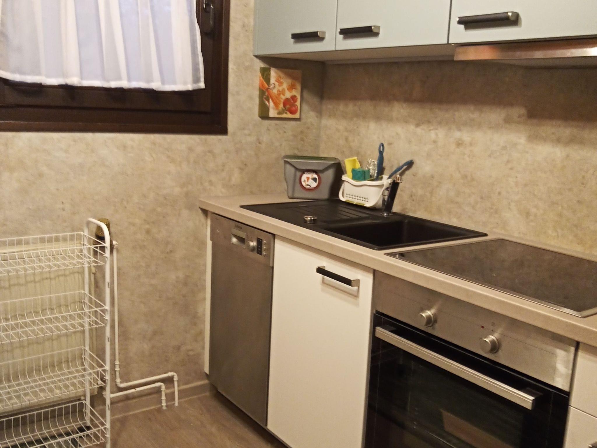 Die Küche ist u.a. mit einem Geschirrspüler, Kühlschrank mit kleiner Gefrierkombination, moderner Elektroherd mit Backofen, Mikrowelle, Toaster, Kaffeemaschine, Handmixer, Wasserkocher und weiteren Küchenutensilien ausgestattet.