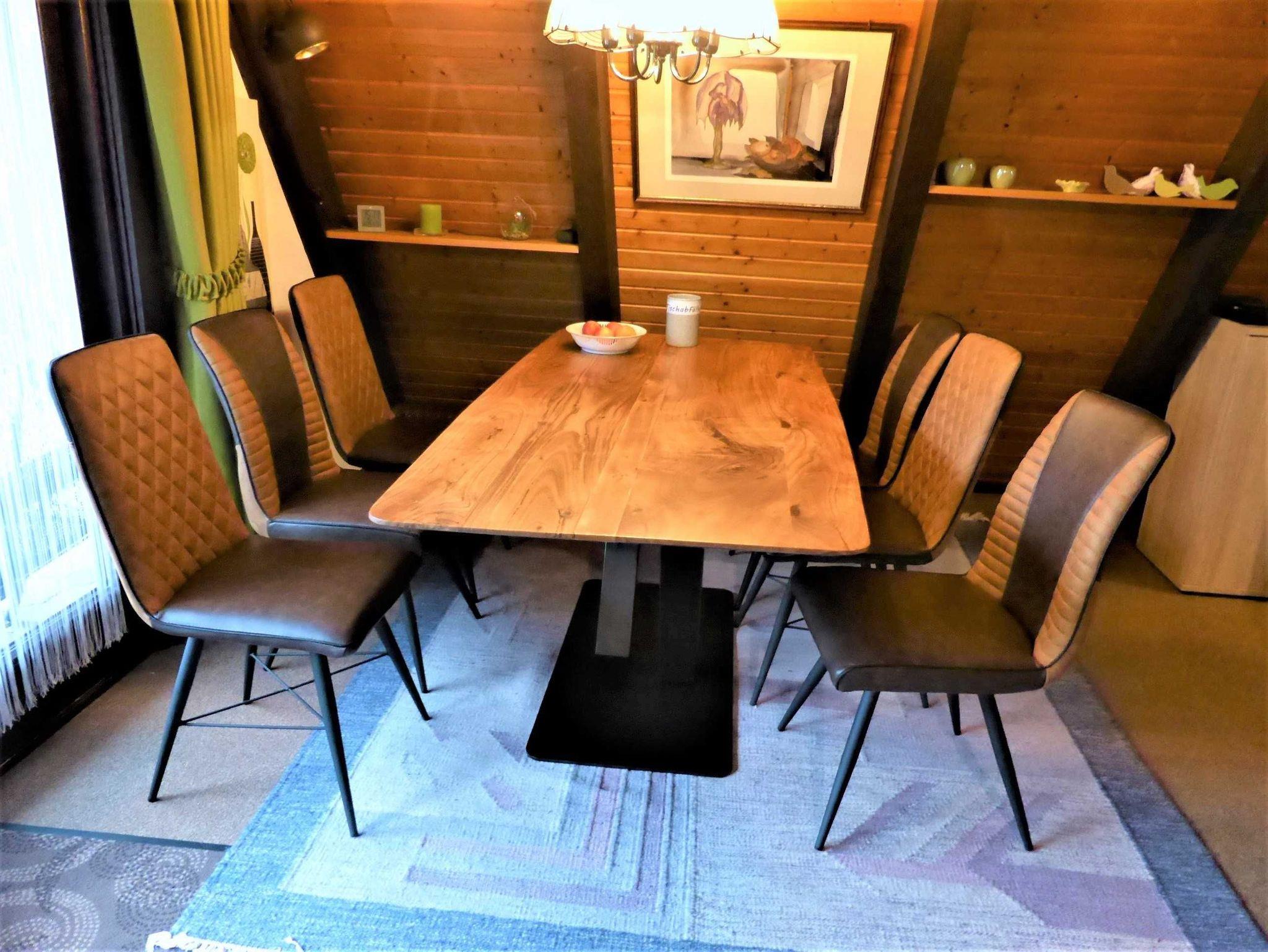 Im Wohn-/Esszimmer finden Sie neben einer kleinen Stereoanlage auch einen Fernseher (SAT-TV) und eine neue Wohnlandschaft.