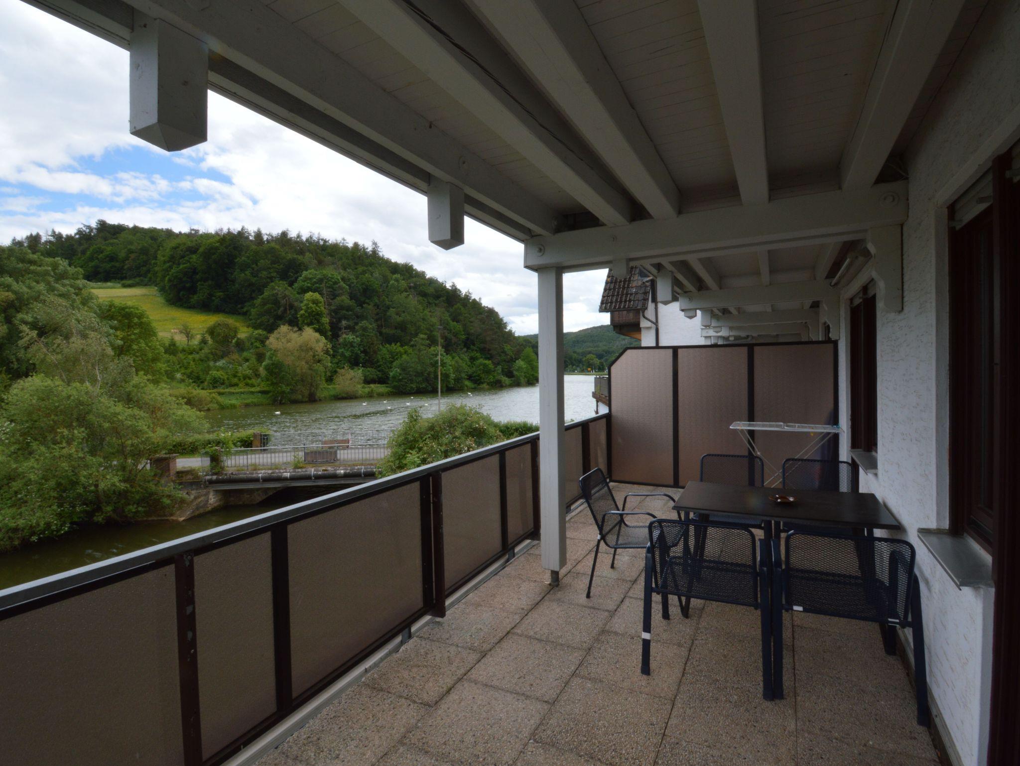 Der Balkon bietet einen herrlichen Blick auf das Vorstaubecken und den Wald des Nationalparks Kellerwald-Edersee.