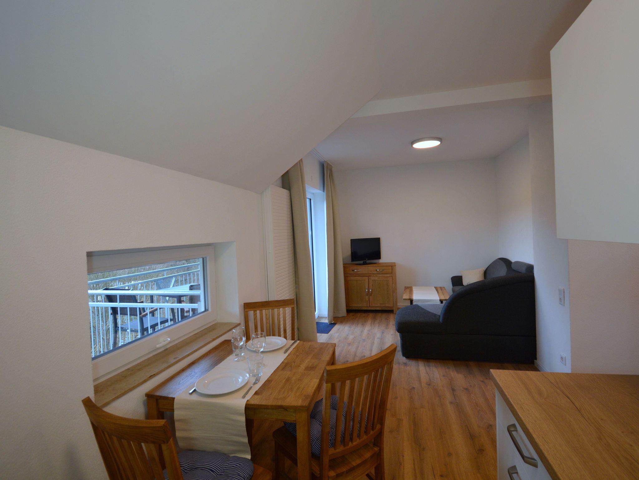 Die moderne Zwei Zimmer Wohnung liegt im zweiten Stock unseres Hauses. Die Wohnung ist mit 47 qm perfekt für einen Urlaub zu zweit. Das Schlafzimmer ist mit einen großen Doppelbett (180 cm x 200 cm) ausgestattet. Besonderes Highlight im Schlafzimmer sind die Nachttischlampen mit verschiedenen Lichtstimmungen, je nachdem, ob Sie helles Licht zum Lesen benötigen oder ein warmes Licht zum Relaxen. Die Schlafzimmer lassen sich für besonders erholsame Nächte komplett verdunkeln. Auf der bequemen Couch haben Sie nach einem erlebnisreichen Tag einen herrlichen Ausblick auf die Natur. Die große Küche ist ausgestattet mit Kühl- und Gefrierschrank, Spülmaschine, Kaffeefiltermaschine, Wasserkocher, Toaster und Eierkocher und vieles andere, was Sie zum Kochen brauchen. Das Badezimmer verfügt neben dem WC über ein Urinal und eine ebenerdige Dusche mit mobilen Duschsitz. Auf dem Balkon lässt es sich in der Morgensonne mit einem Blick auf den Nationalpark und das Vorstaubecken des Edersees gut frühstücken.