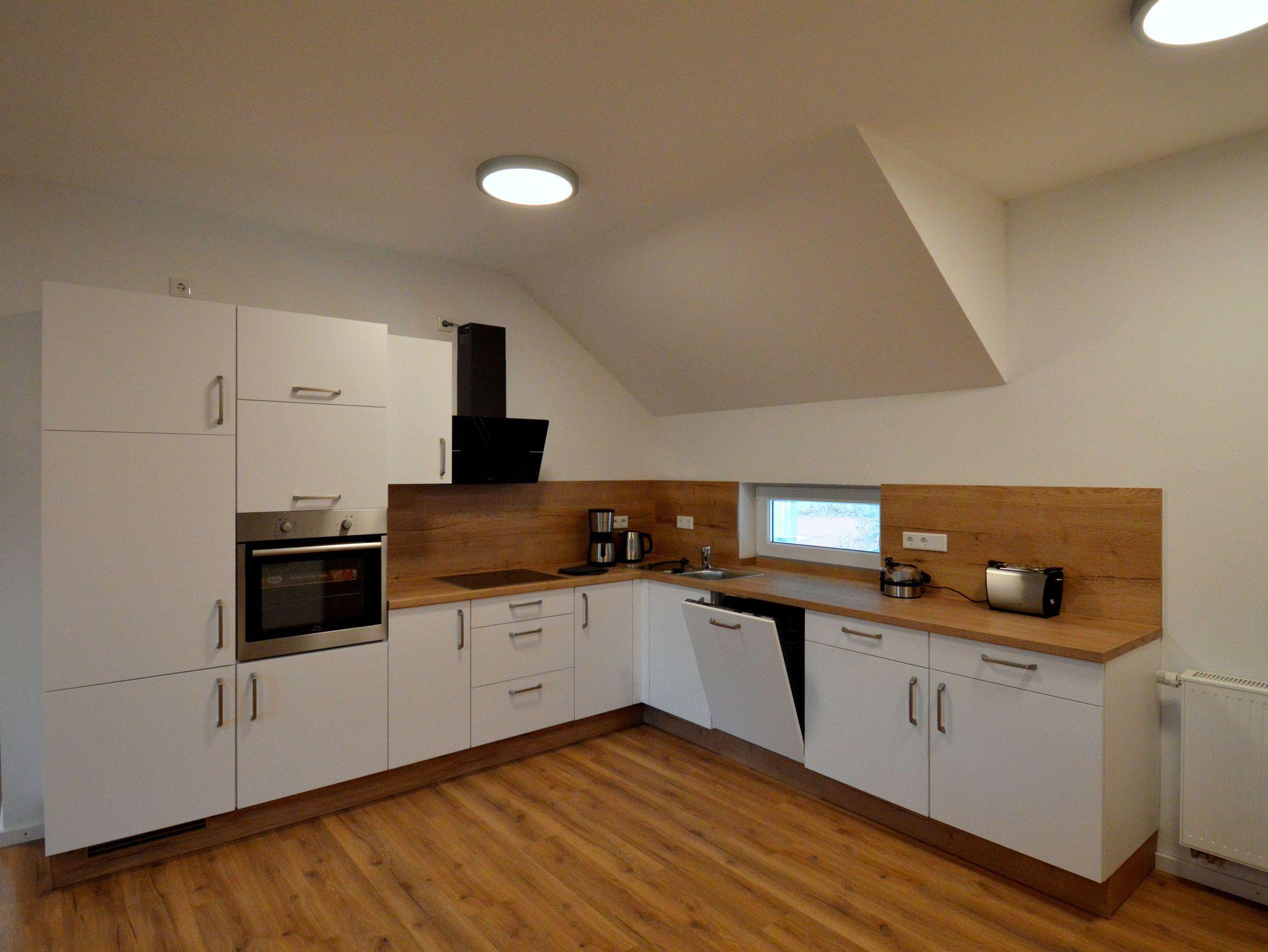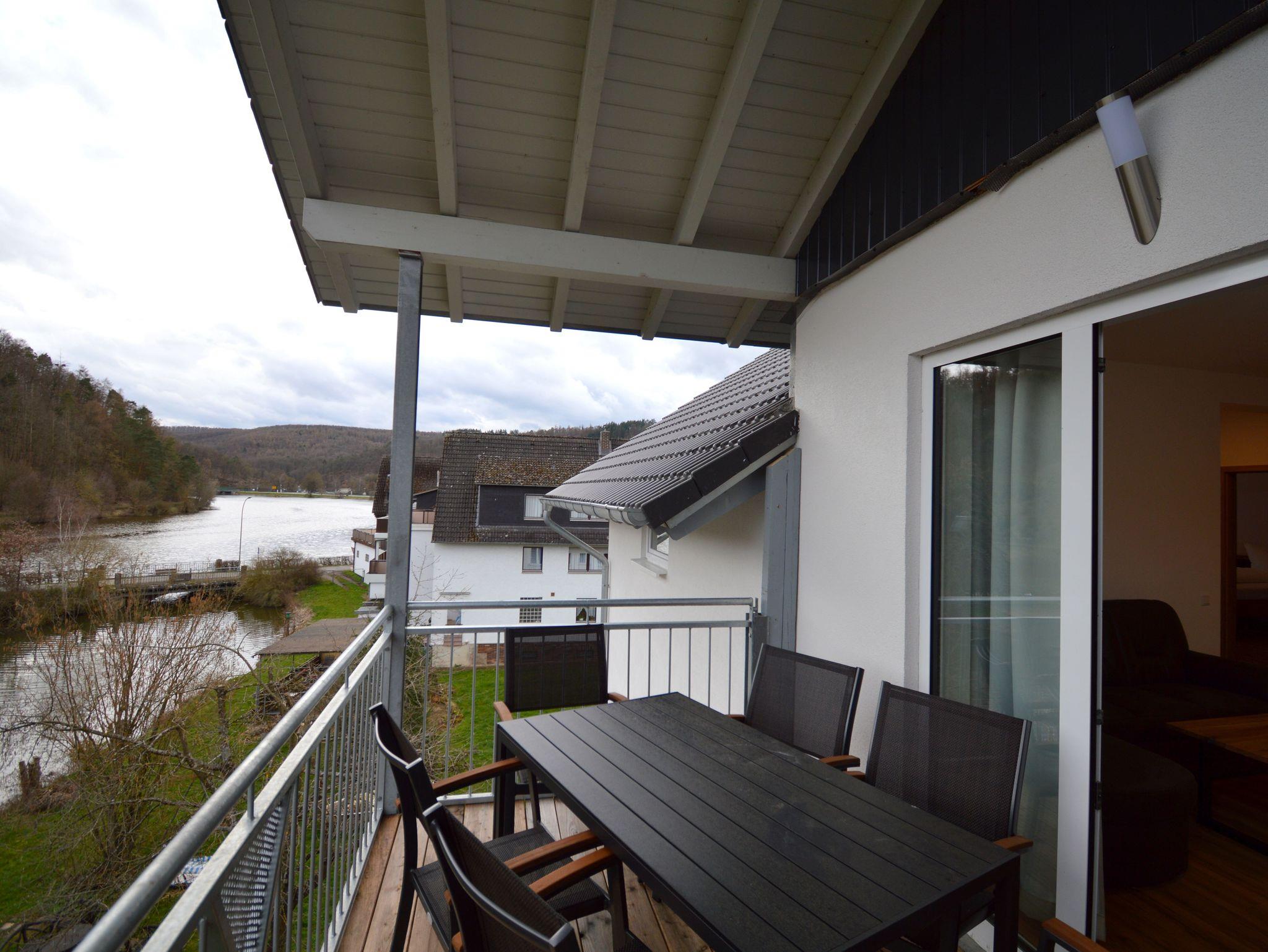 Die moderne Drei-Zimmer Wohnung liegt im zweiten Stock unseres Hauses. Die Wohnung ist mit 82 qm perfekt für einen Urlaub zu viert. Es sind zwei Schlafzimmer mit jeweils einen großen Doppelbett (200 cmx 200 cm) vorhanden. Besonderes Highlight im Schlafzimmer sind die Nachttischlampen mit verschiedenen Lichtstimmungen, je nachdem, ob Sie helles Licht zum Lesen benötigen oder ein warmes Licht zum Relaxen. Die Schlafzimmer lassen sich für besonders erholsame Nächte komplett verdunkeln. Die große Küche ist ausgestattet mit Kühl- und Gefrierschrank, Spülmaschine, Kaffeefiltermaschine, Wasserkocher, Toaster und Eierkocher und vieles andere, was Sie zum Kochen brauchen. Der Wohnbereich bietet sehr viel Platz um sich in Ruhe gemütlich zu entspannen. Das Badezimmer verfügt neben dem WC über ein Urinal und eine ebenerdige Dusche mit mobilen Duschsitz. Auf dem Balkon lässt es sich in der Morgensonne mit einem Blick auf den Nationalpark und das Vorstaubecken des Edersees gut frühstücken.