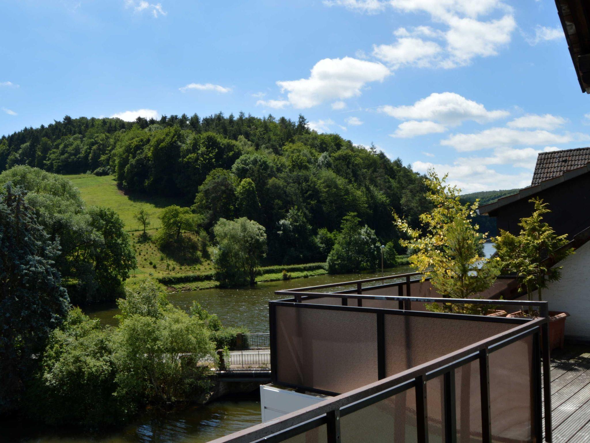 Der Balkon bietet einen herrlichen Blick auf das Vorstaubecken und den Wald des Nationalparks Kellerwald-Edersee.