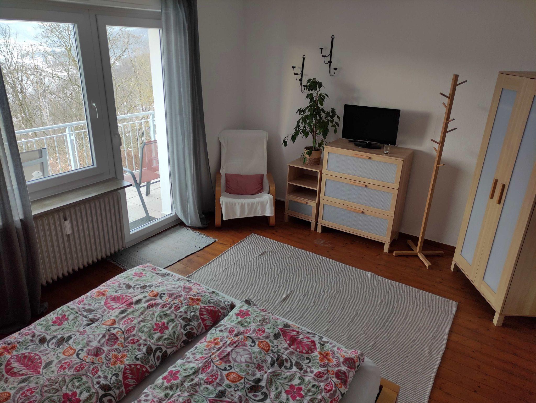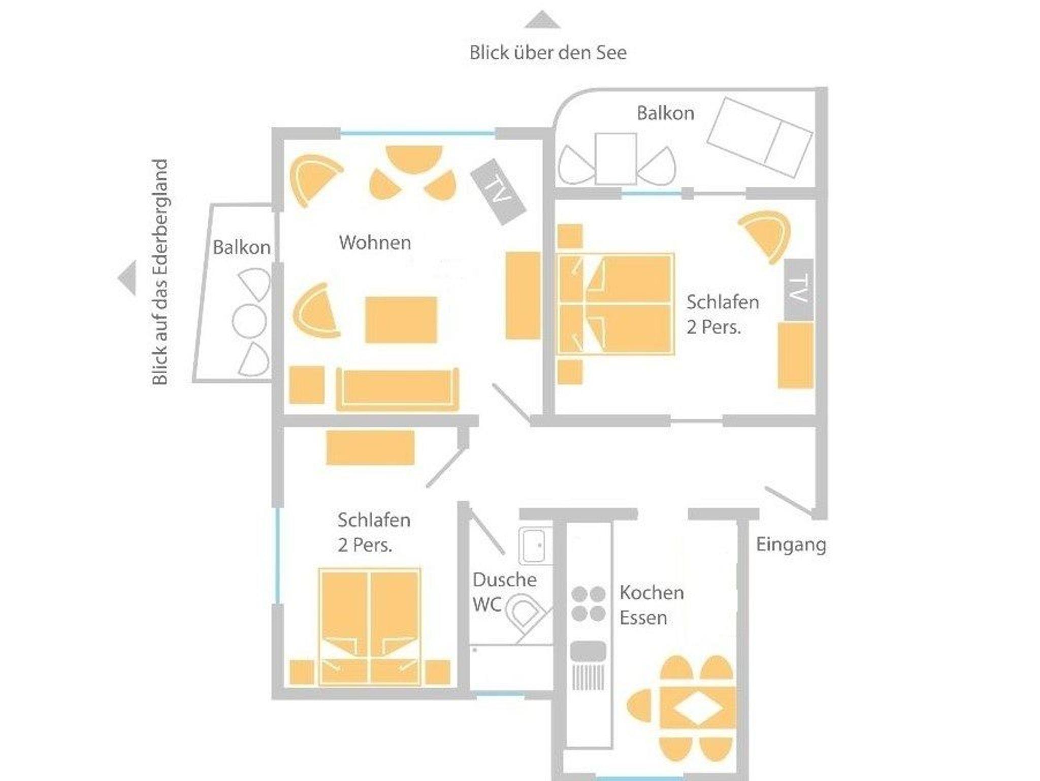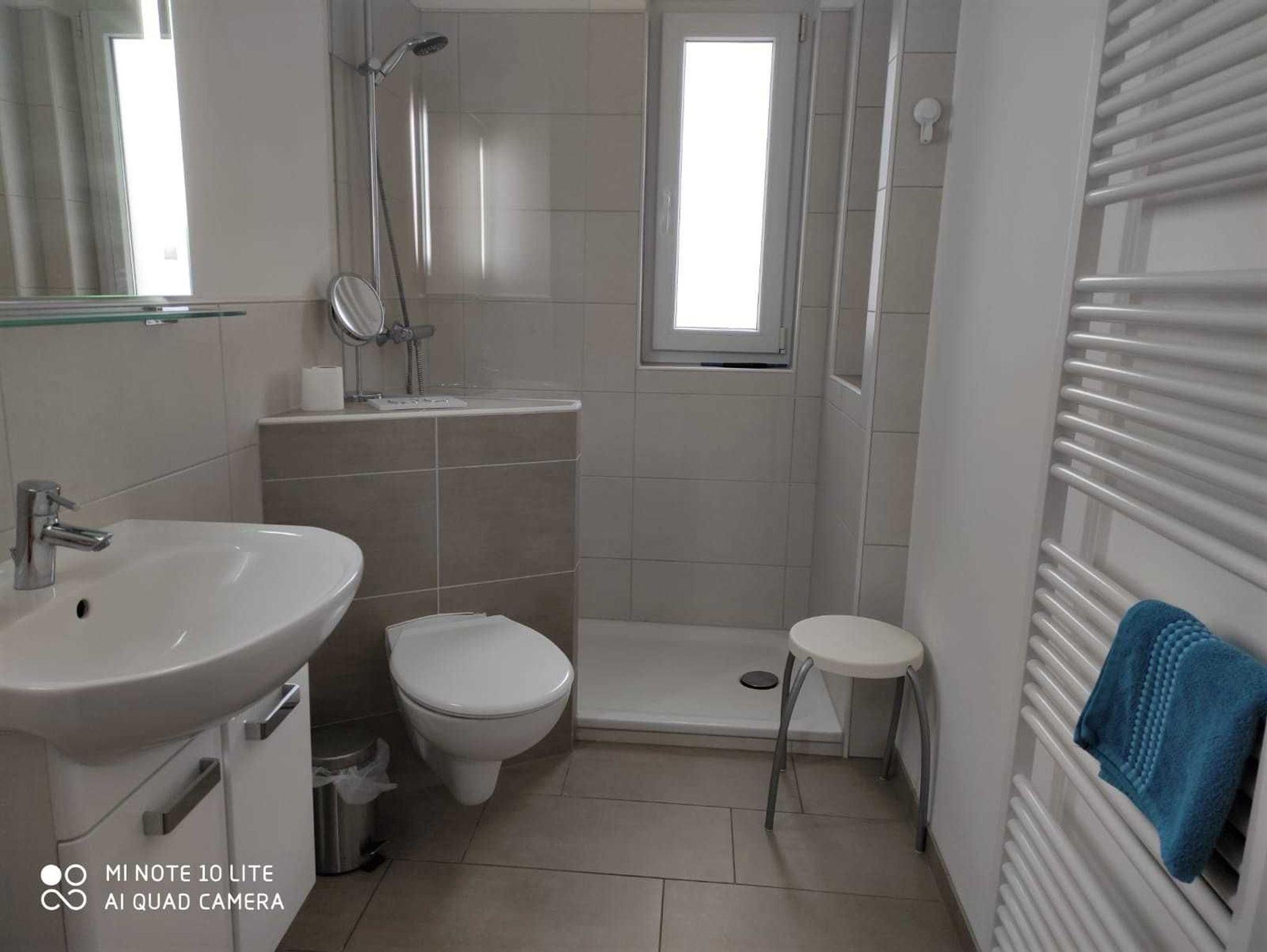 Das Badezimmer wurde 2016 renoviert und ist elegant eingerichtet mit einer großen, fast bodengleichen Dusche. Das vordere Schlafzimmer führt auf den zweiten, großen Balkon mit Sitzgelegenheit und See- und Schlossblick. Vom hinteren Schlafzimmer haben Sie einen schönen Blick auf das Ederbergland.