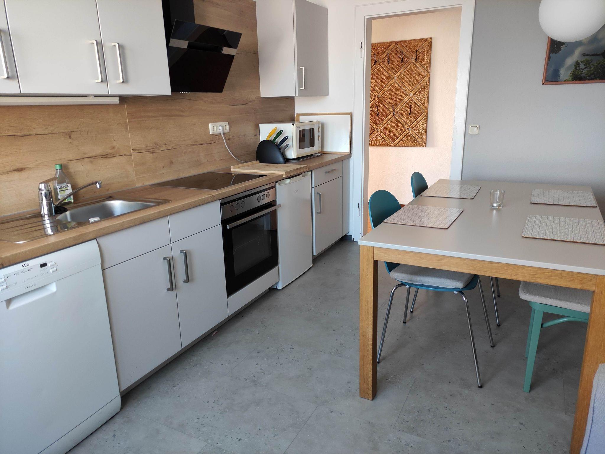 Die Ferienwohnung Pfingstnelke im ersten Obergeschoss ist bestens für den Urlaub mit Familie und Freunden geeignet. Die große Essküche wurde 2021 mit einer neuen, hochwertigen Einbauküche ausgestattet und lädt zu gemeinsam verbrachten Abenden ein. Eine Spülmaschine ist vorhanden. Entspannen können Sie im geräumigen Wohnzimmer mit Balkon und Panoramablick auf Ederbergland und Edersee.