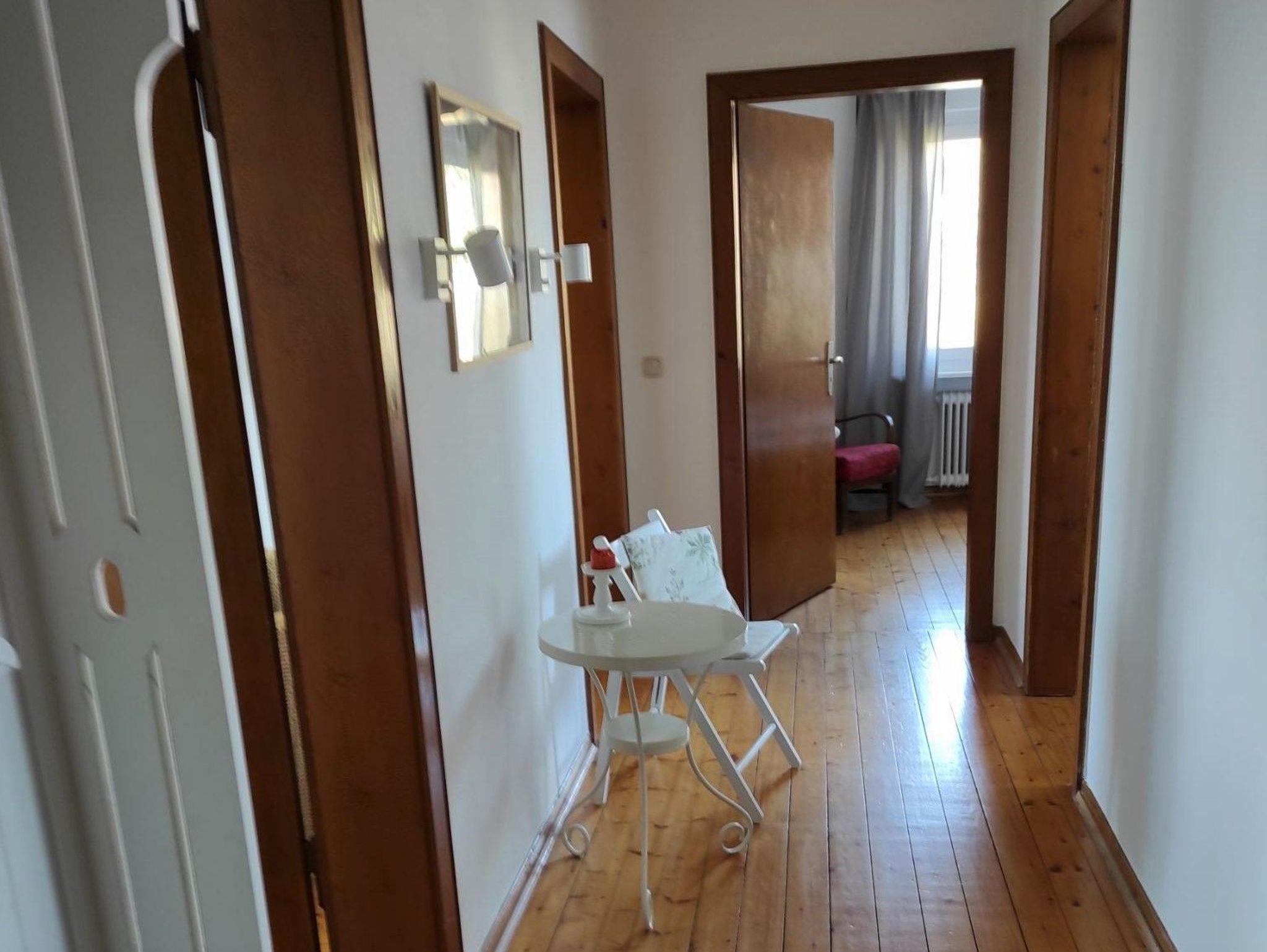 Zwei geräumige Schlafzimmer bieten zusätzliche Rückzugsmöglichkeiten. An das vordere Schlafzimmer grenzt der große Balkon mit See- und Schlossblick. Das Bad mit zwei Fenstern hat eine fast bodengleiche Dusche. Eine Wohnung zum Wohlfühlen!
