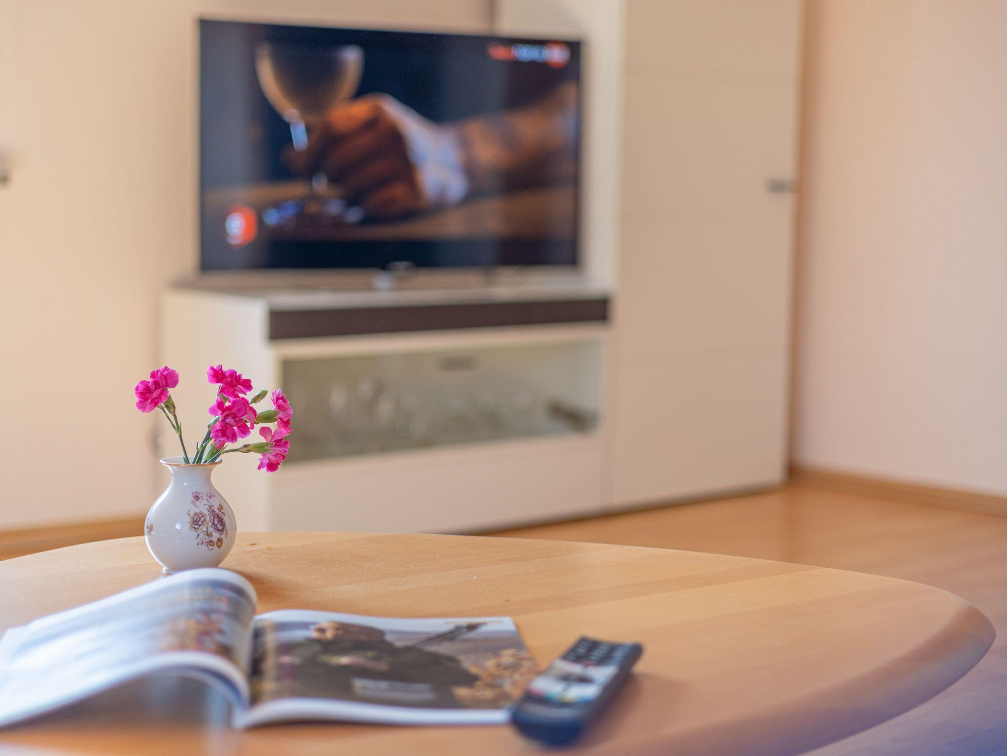 Die modern eingerichtete Wohnung befindet sich im 1. Stock. 2-4 Personen finden auf 65 m2 ausreichend Platz. Das freundlich gestaltete Wohnzimmer ist großzügig bemessen, mit Schlafcouch und Flatscreen. Separates Schlafzimmer mit Doppelbett, daneben ein helles Badezimmer mit großer Walk-in Dusche. In der geräumigen Küche hat ein Esstisch Platz. Sie ist mit allen Utensilien ausgestattet, ob Herd mit Ceranfeld, Mikrowelle oder Toaster.