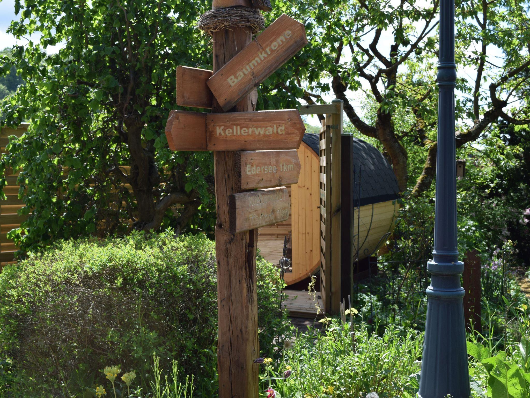 Ferienwohnung Kellerwald: Die Wohnung Kellerwald ist 62 qm groß, bietet für zwei Erwachsene ausreichend Platz und befindet sich im Erdgeschoss mit separatem Eingang. Auf Anfrage ist ein Zustellbett für ein Kind möglich. Außerhalb der Wohnung steht ein gemütliches, separates Plätzchen für die Feriengäste zur Verfügung. Ob für ein Frühstück im Freien oder einfach nur zum Verweilen, Entspannung im naturbelassenen Garten ist garantiert.