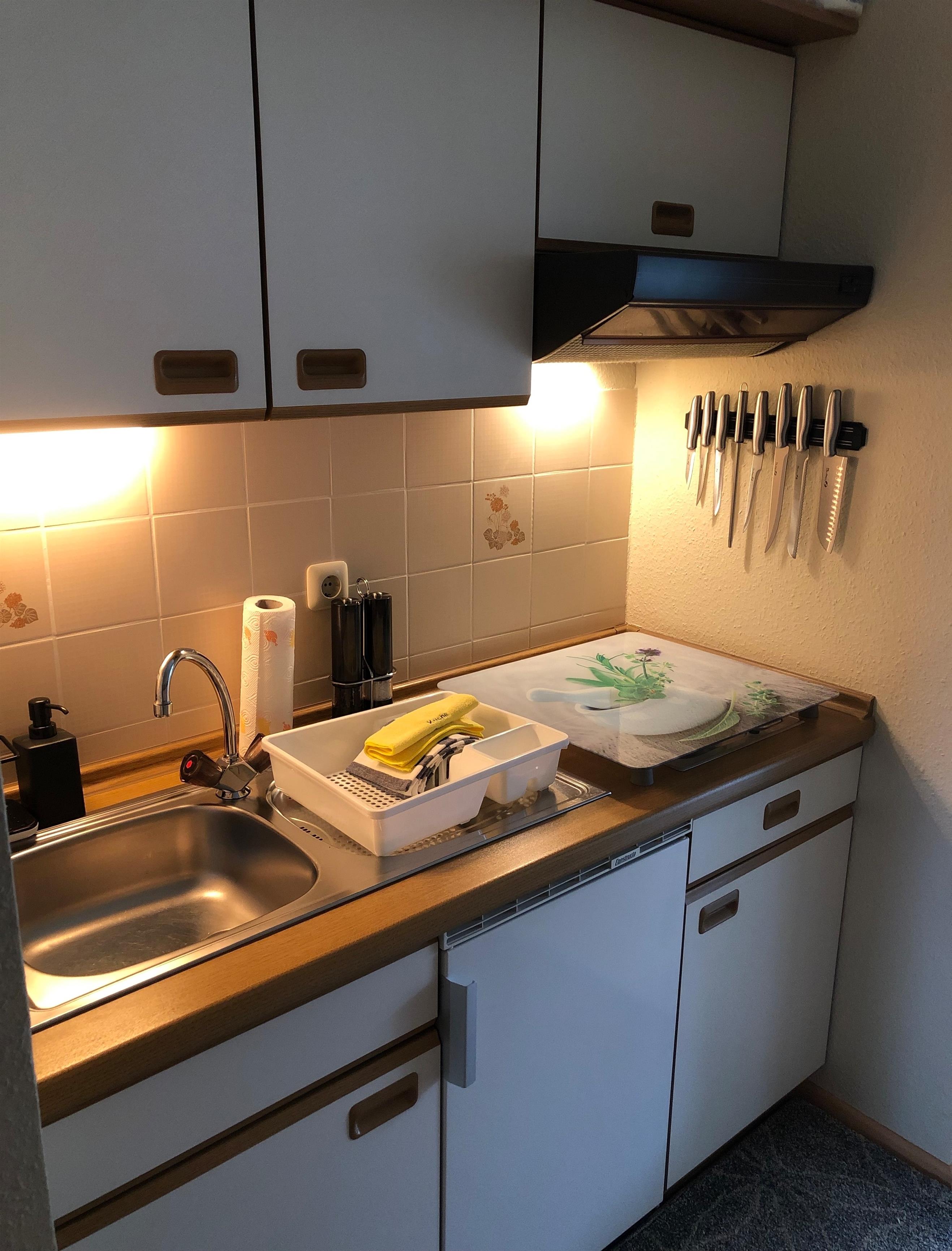 Für den abendlichen Schlummertrunk ist der schöne Balkon ideal. In der gut ausgestatteten Küche finden Sie neben einem Kühlschrank auch eine Mikrowelle und einen Backofen.