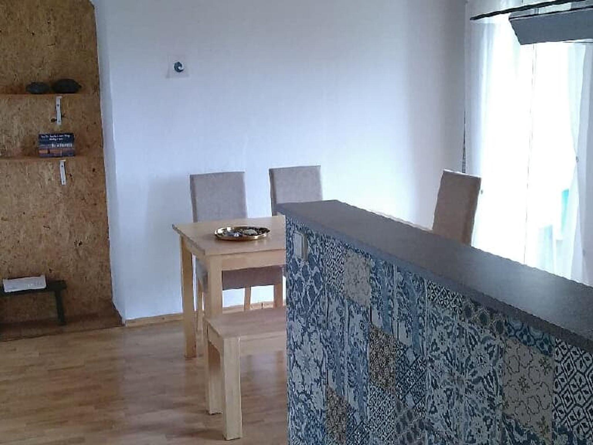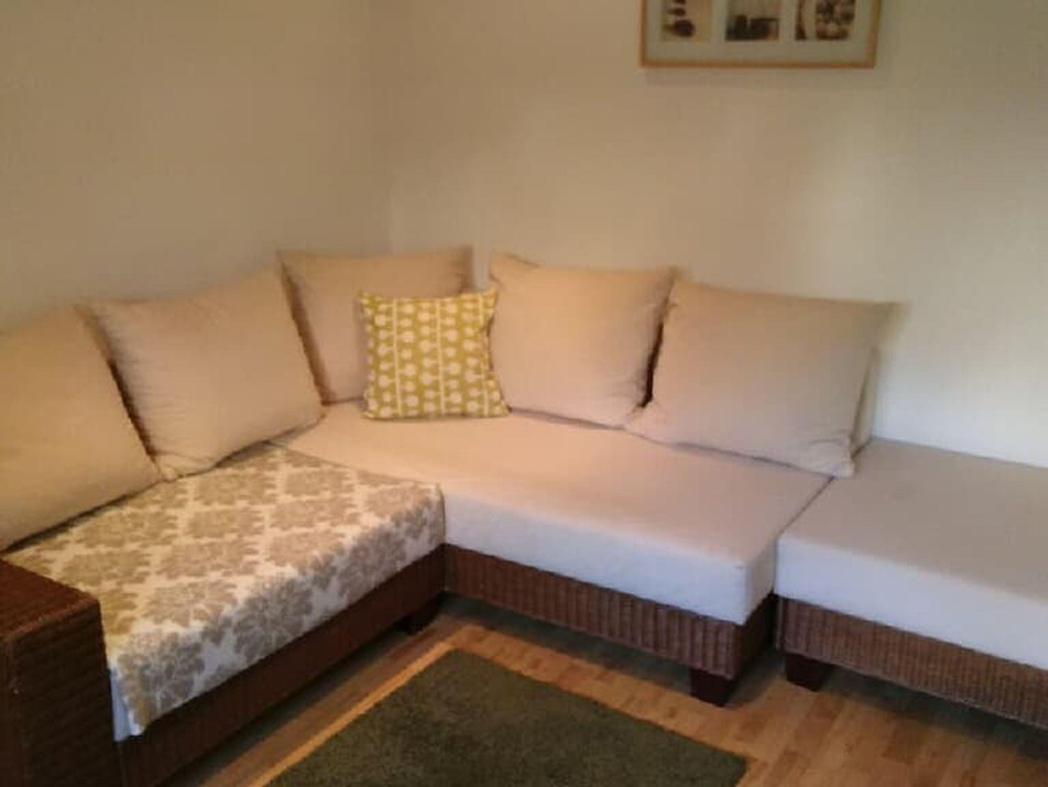 Es gibt ein 1,40m breites Bett (mittelhart-harte Matratze) für zwei, sowie ein einzelnes 90cm breites Bett (harte Matratze), zusätzlich gibt es noch zwei Schlafplätze auf einem Sofa. Alle Schlafplätze befinden sich in einem Raum. Desweiteren befindet sich noch eine Kleiderstange und ein Regal im Raum. Auch ein Fernseher mit Sat Anschluss ist hier zu finden. Bettdecken, Kissen und Bettwäsche sind vorhanden.