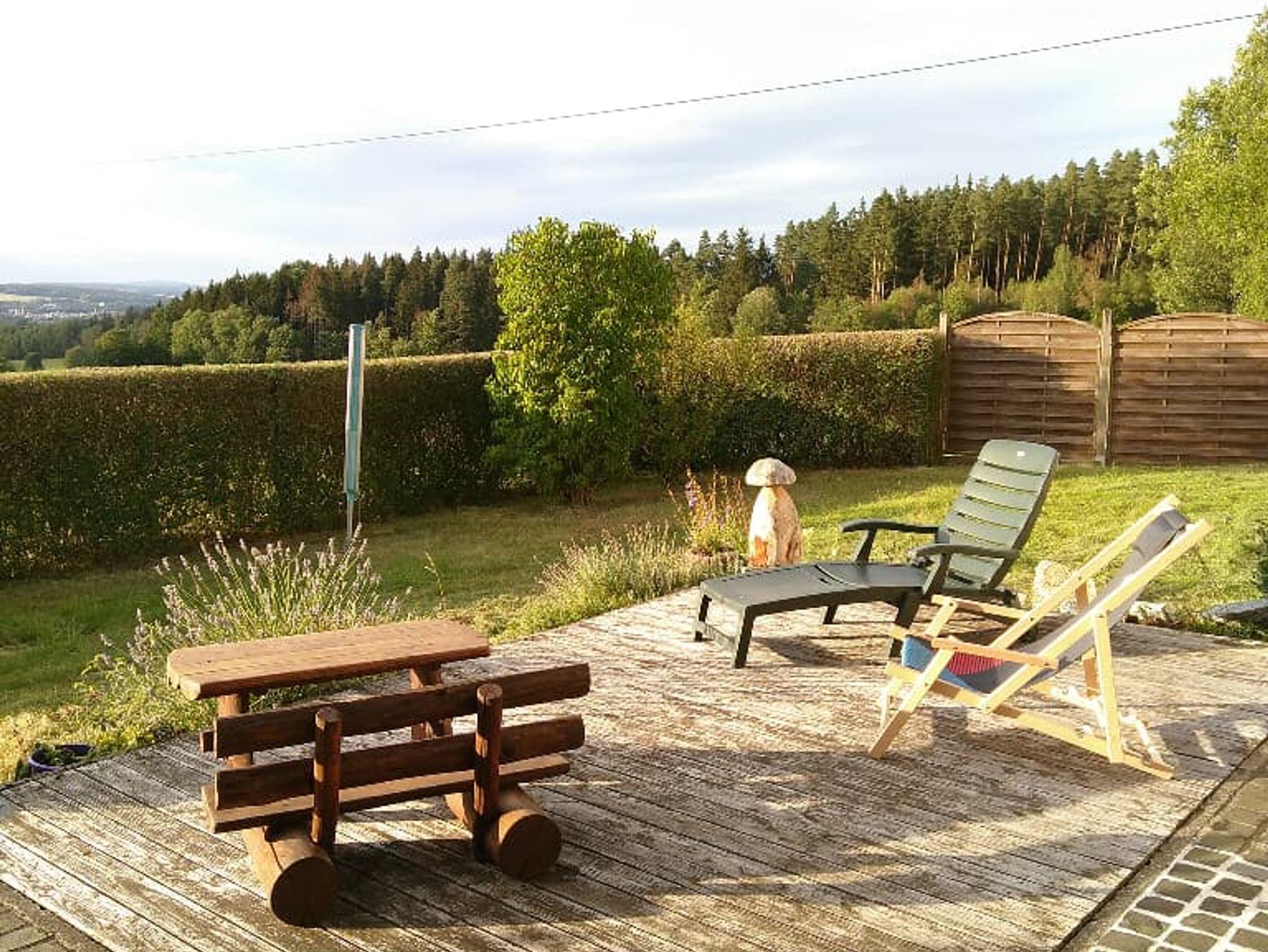 Die Wohnung liegt in den Ausläufern des Steinwalds mit Blick zum Fichtelgebirge. Von der Terasse aus hat man einen direkten Blick zur Kösseine 939m (zum Kösseinehaus am Gipfel sind es ca.13km) und zur Luisenburg (hier gibt es das Naturphänomen Felsenlabyrinth ca.16km bis zu Startpunkt). Umgeben ist die Unterkunft von großen Wiesen und Wald. Nebenan wohnen Laufenten, Hühner und Pferde.