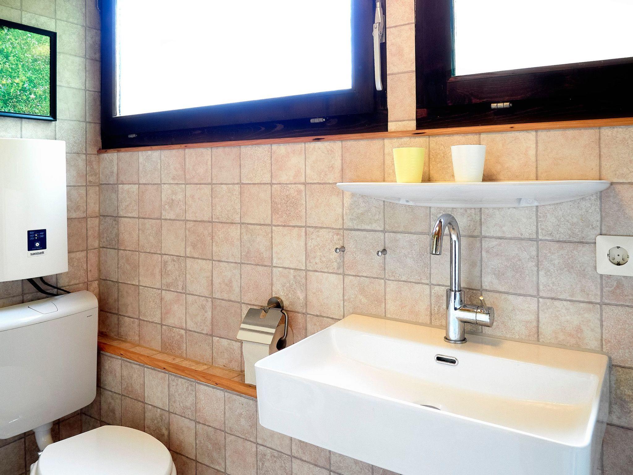 The house has a large, beautiful garden and a terrace. In the neighbouring shed you will find garden furniture, a parasol, a barbecue with accessories and a badminton set. On the terrace there is a wooden table/seating combination for eating and playing, the beautiful natural garden with herb spiral and grass area invites you to relax and play badminton, for example.