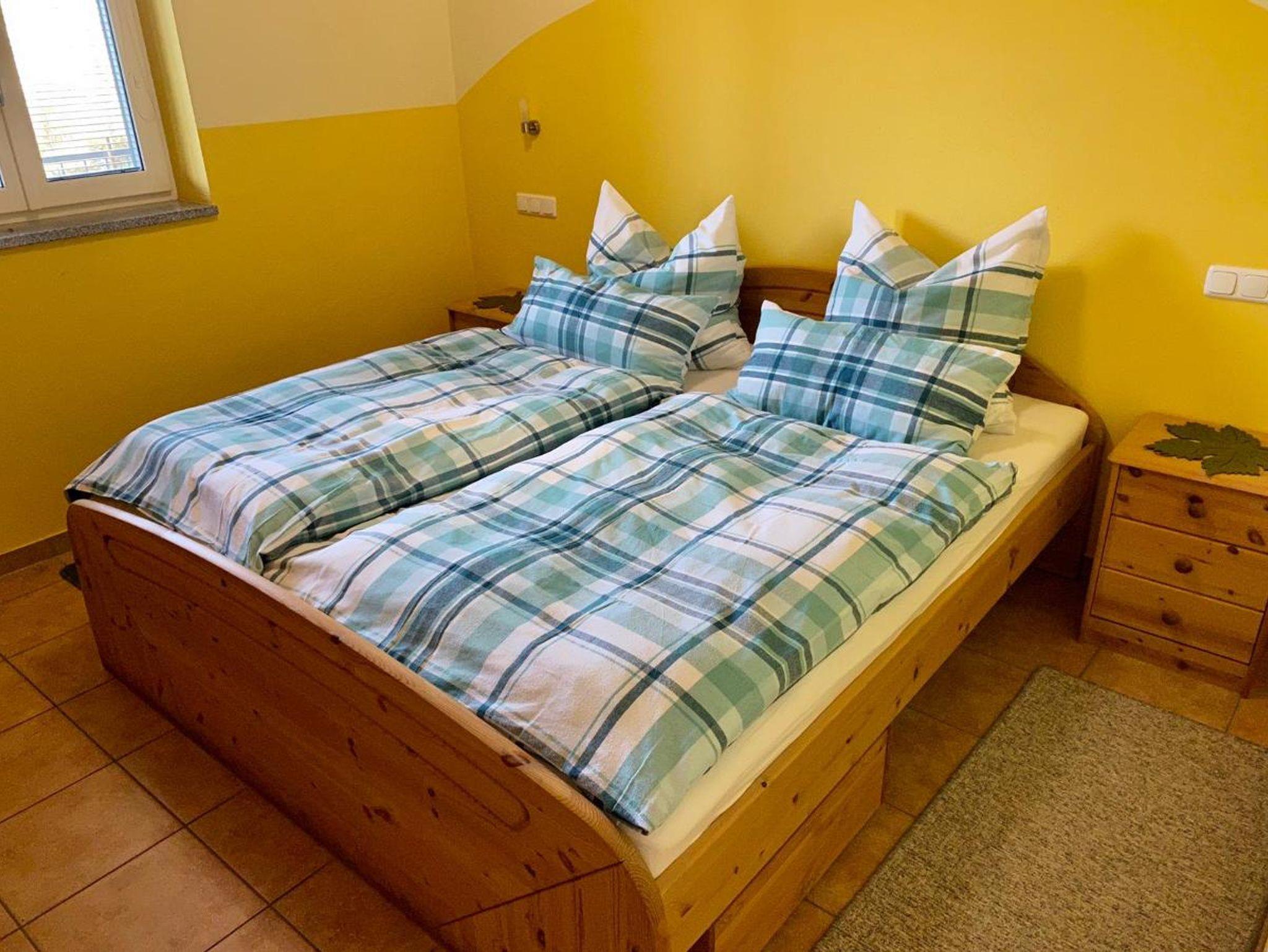 Sie finden einen Schlafraum mit Doppelbett inkl. Bettwäsche,