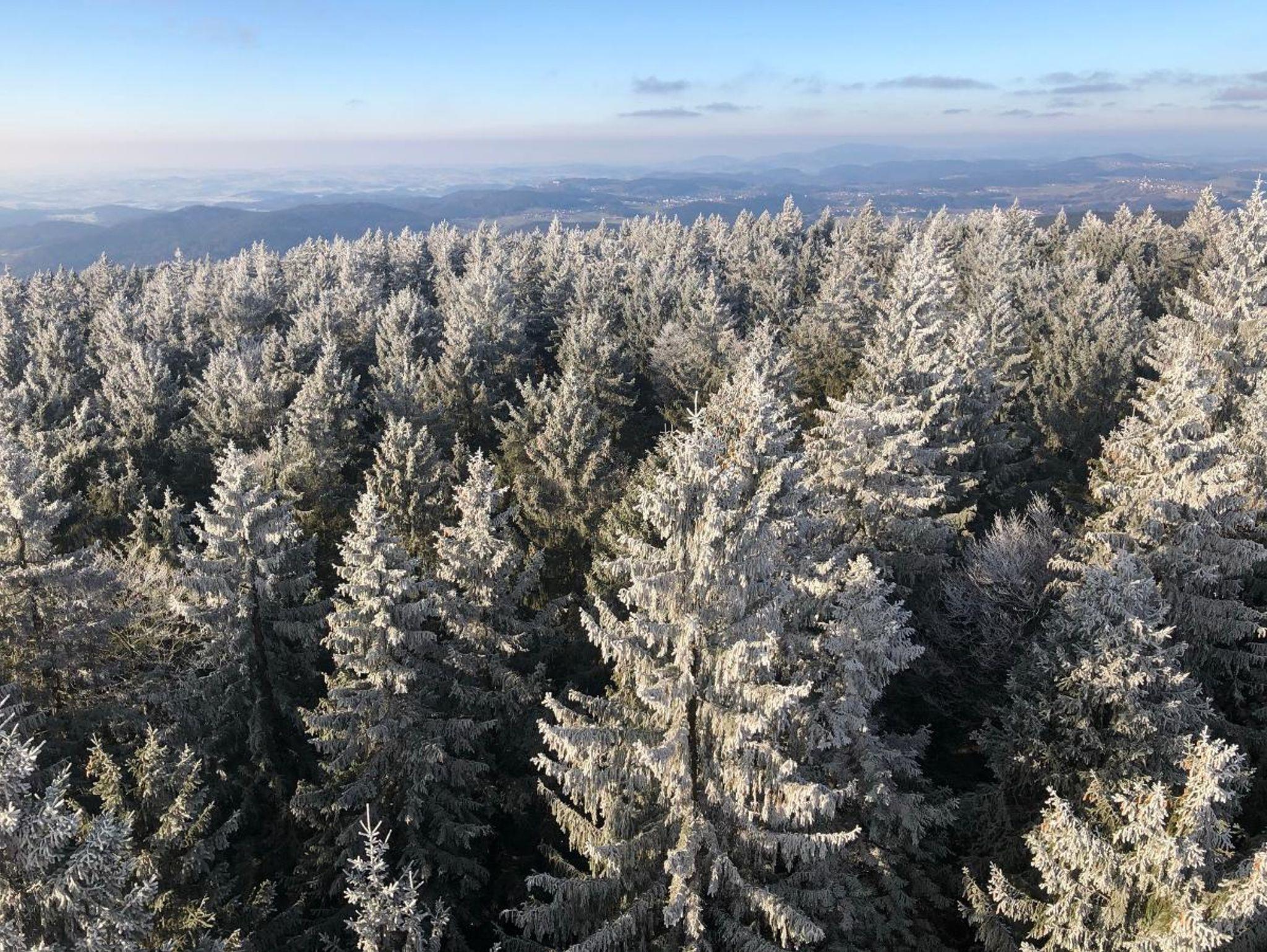 befindet sich ein Aussichtsturm mit Alpenblick, bei entsprechender