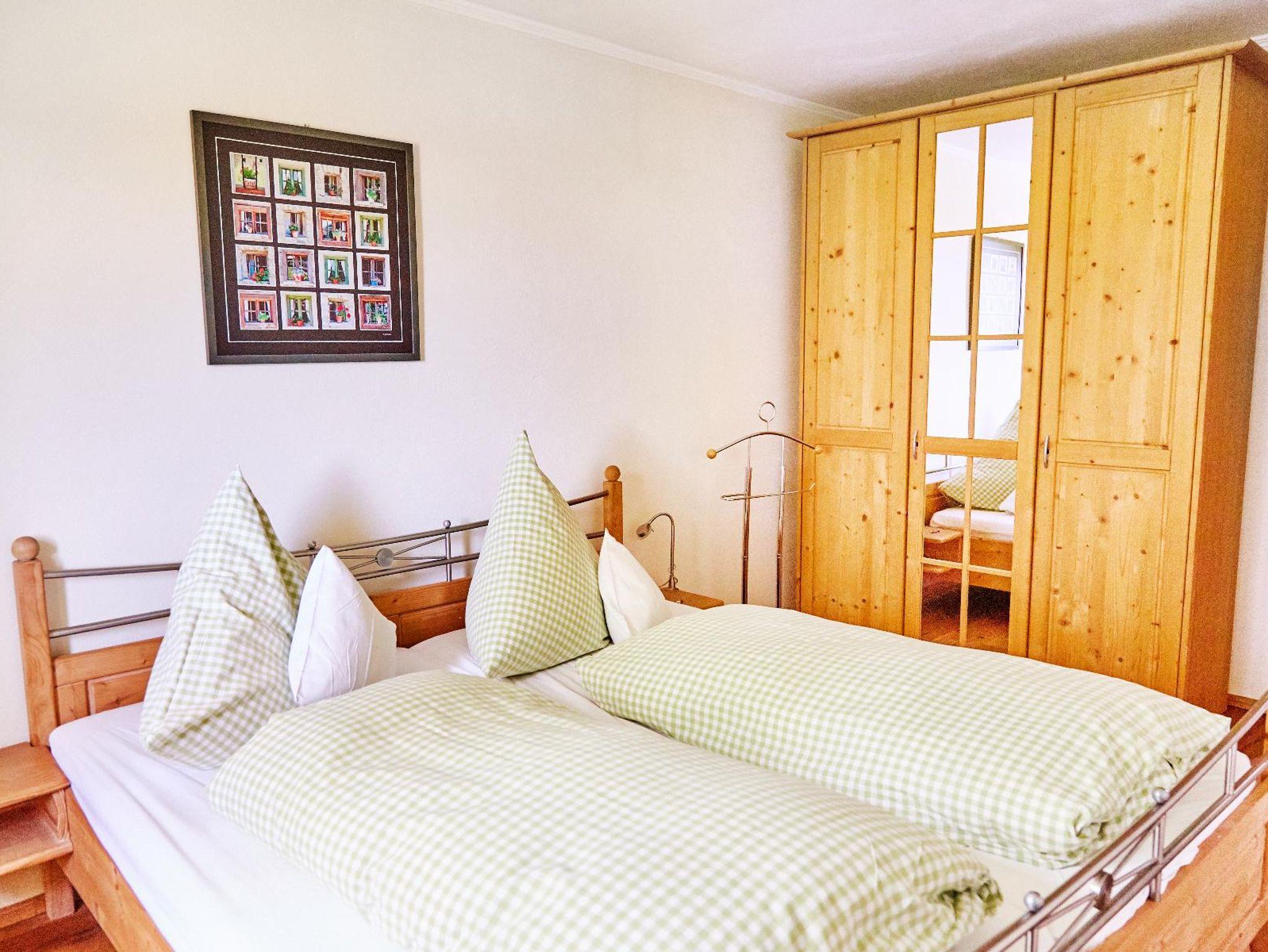 Es sind zwei Schlafzimmer mit Doppelbett. Das Bad besteht aus Dusche/WC, ein Fön ist vorhanden. Radiowecker, TV-Sat mit Flachbildschirm, auf Wunsch CD-Player. Die Wohnung verfügt über einen Balkon/gleichzeitig Außentreppenaufgang.