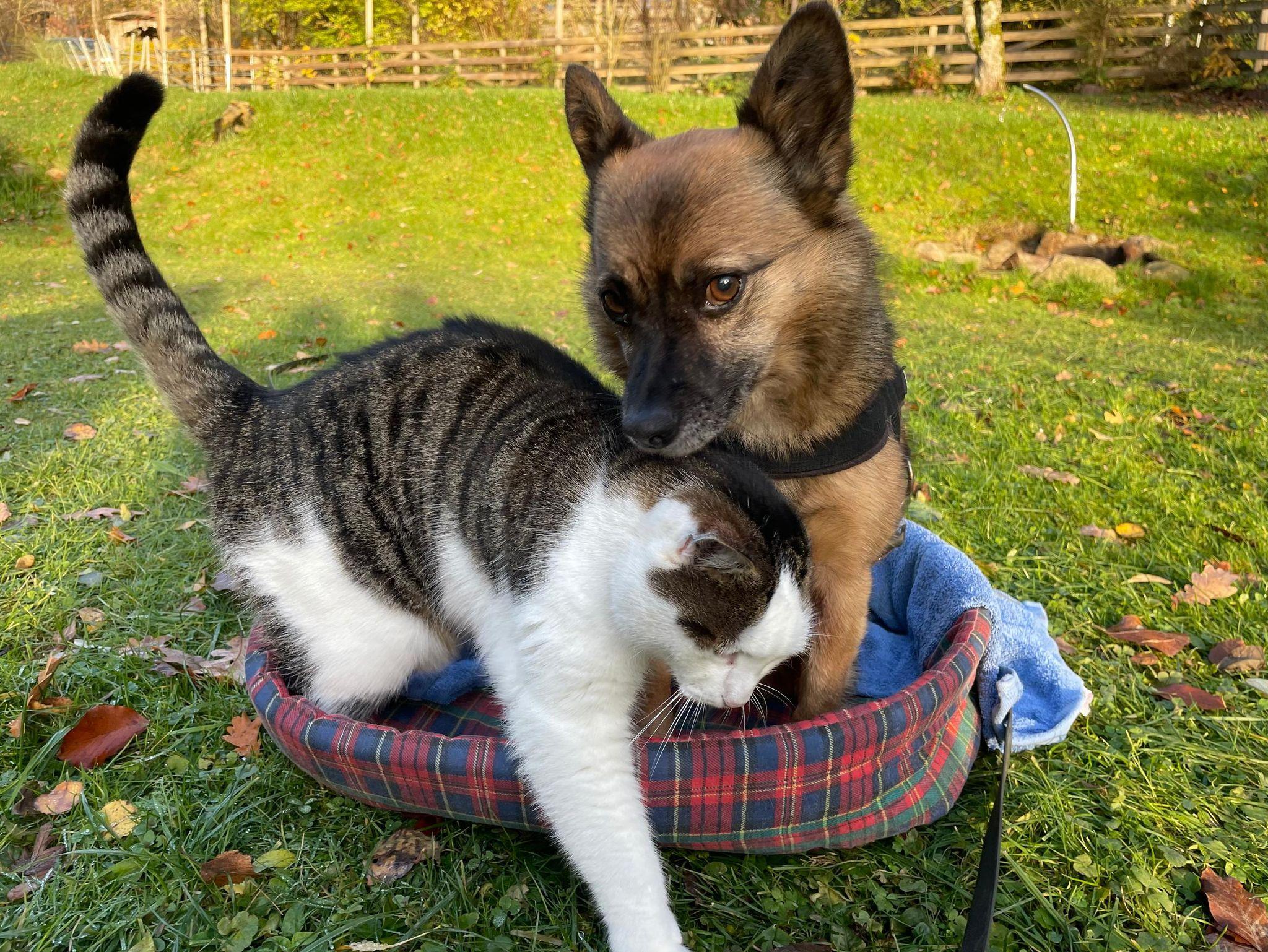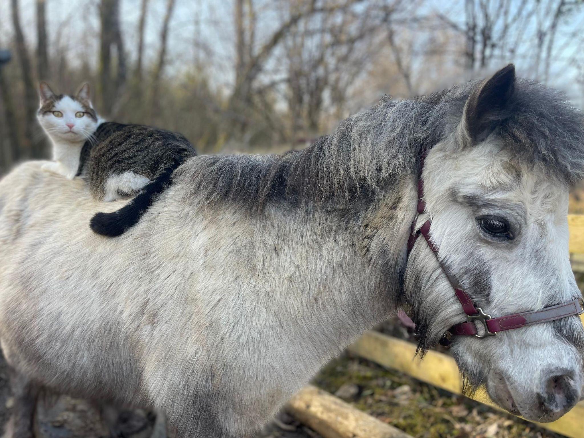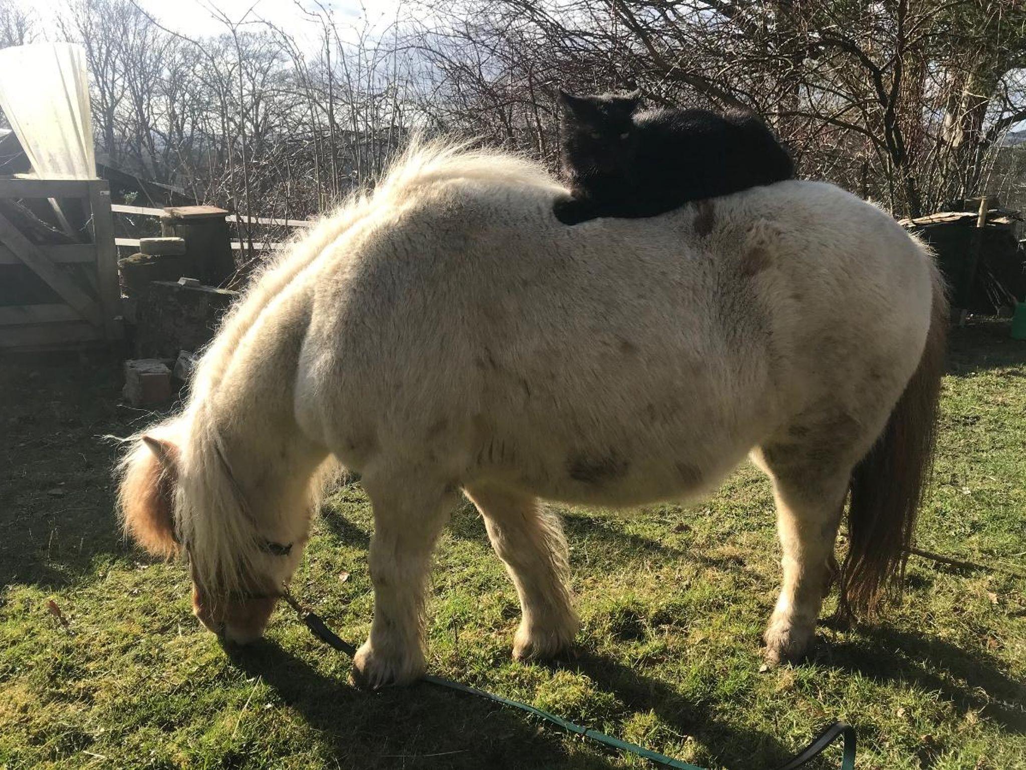 Bei uns wohnen derzeit mehrere Katzen, zwei Hunde und zwei Ponys.