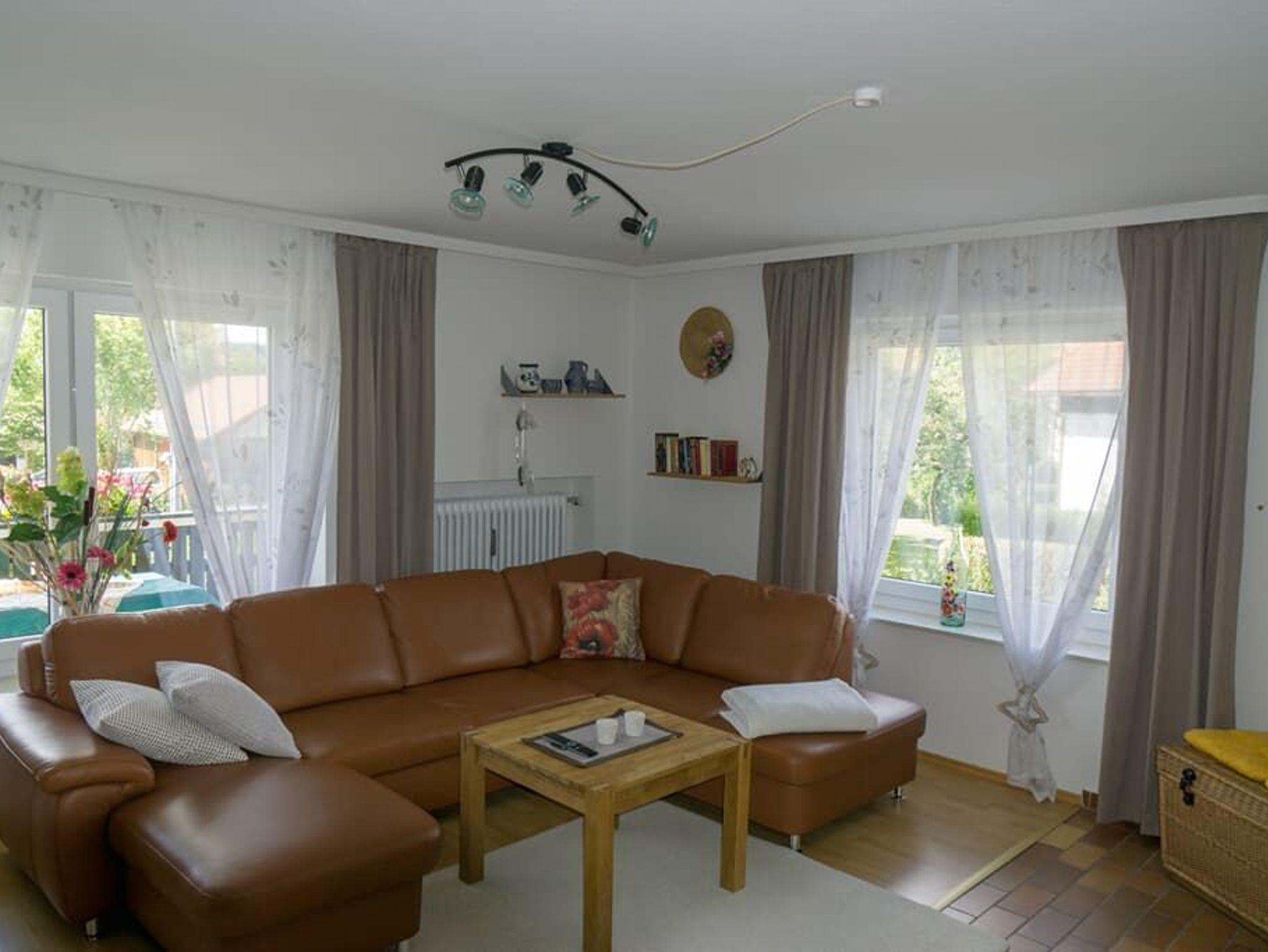 Die Ferienwohnung mit 110m² Wohnfläche und Balkon ist hell, freundlich und großzügig geschnitten. Die voll ausgestattete Wohnküche mit Essbereich, SAT-TV und Kachelofen verfügt über Spülmaschine, Kühlschrank mit kleinem Gefrierfach, Mikrowelle, Eierkocher, Herd, Backofen, Toaster und Kaffeemaschine und lässt keine Wünsche offen. Die beiden Schlafzimmer sind jeweils mit einem Doppelbett ausgestattet. Kinderbett und -hochstuhl sind vorhanden. Im Badezimmer sind sowohl Dusche als auch Badewanne vorhanden; zwei Waschbecken bieten mehr Komfort und Platz, um sich wie zuhause zu fühlen. Trockner, Waschmaschine, Bügelbrett und Bügeleisen sind vorhanden. Unsere Sauna im Haus können Sie kostenfrei nutzen. Vor allem im Sommer können Sie Grillabende in unserem Garten verbringen oder auf den Liegen einfach nur entspannen. Die Kinder finden dort mit Sandkasten und Rutsche Spiel und Spaß. Auch Räder und ein Schlauchboot für den nahegelegenen See können vermietet werden. Öffentliche Stellplätze stehen kostenfrei nahe der Unterkunft zur Verfügung. Ein privater PKW-Parkplatz kann nur auf Anfrage genutzt werden.