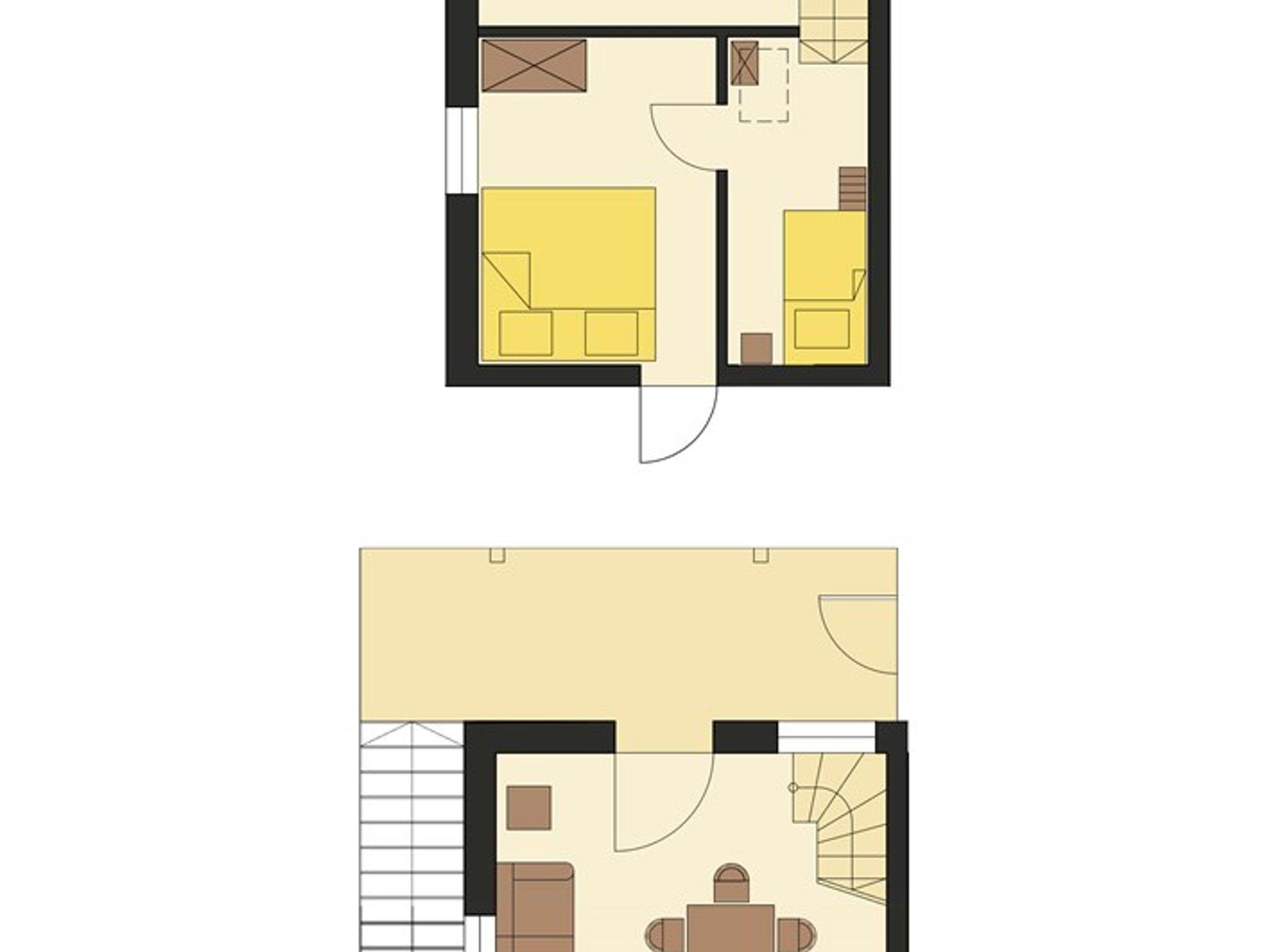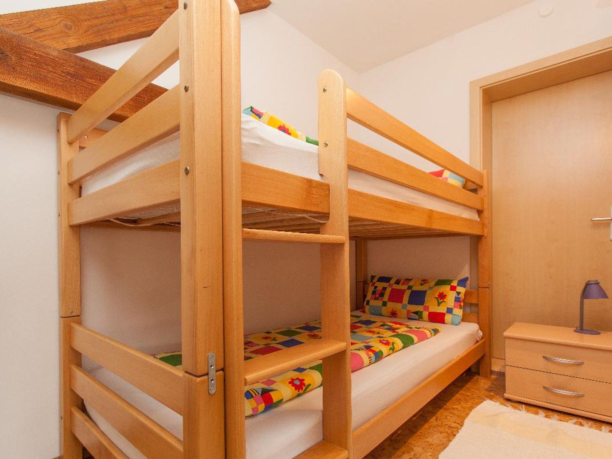 ein Etagenbett. Das Bad / WC hat eine Dusche. Diese Wohnung kann auf Wunsch