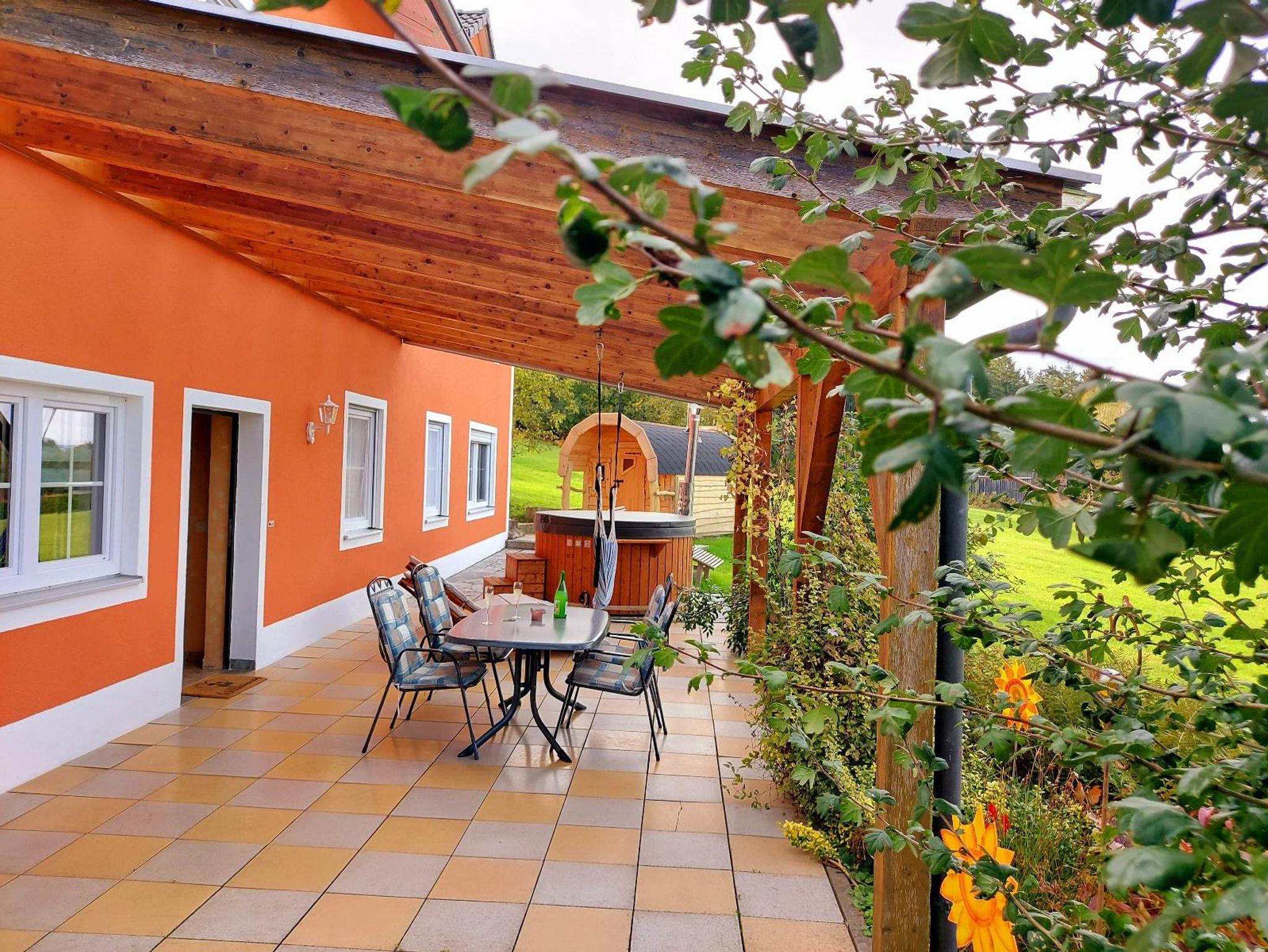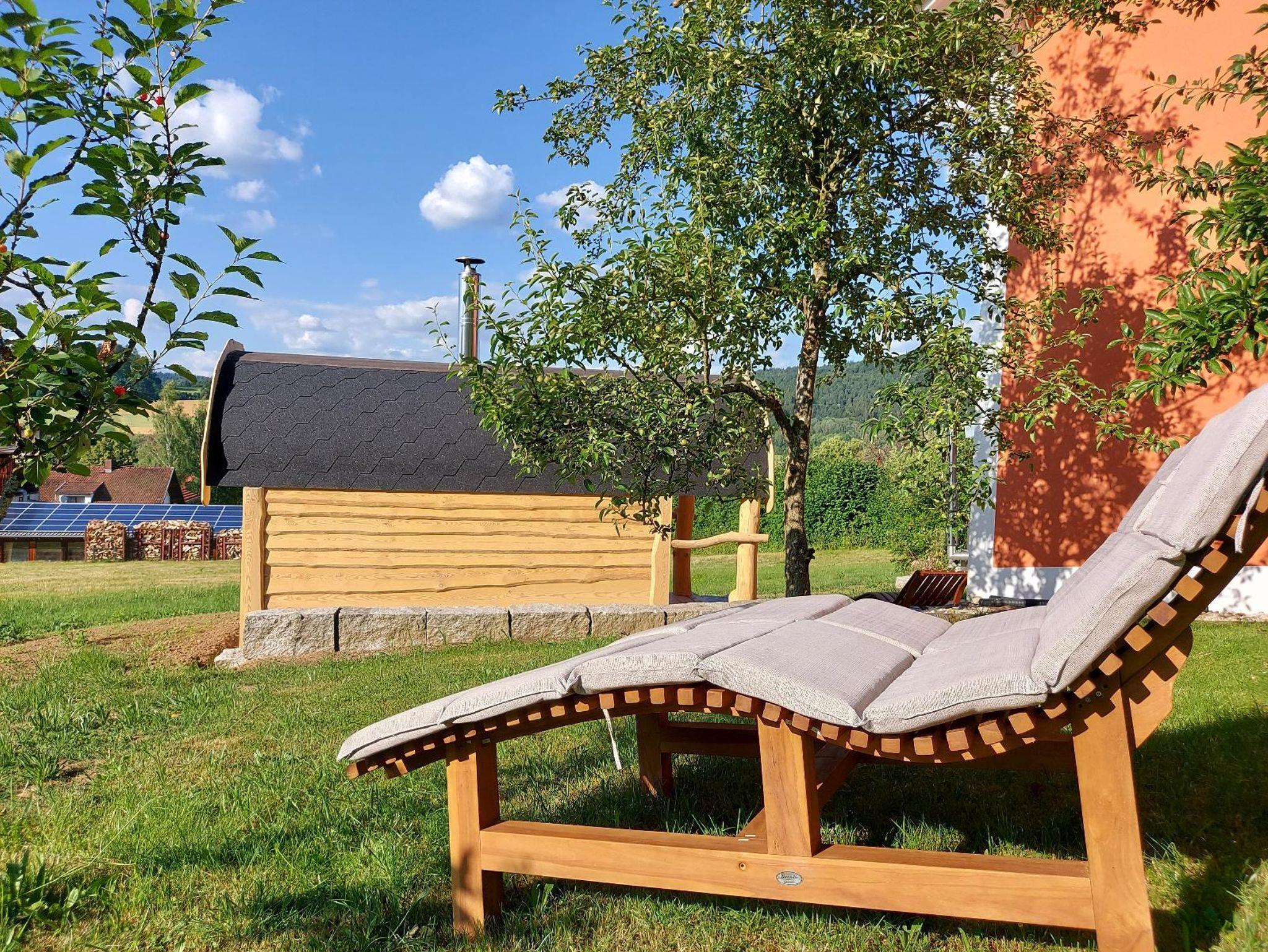 Ruhe und Erholung in einer traumhaften Naturkulisse sind Ihnen in unserer am Orts- und Waldrand liegenden Ferienwohnung (kein Durchgangsverkehr) am Fuße des Bleschenbergs gewiss. Bei uns werden Sie sich rundherum wohlfühlen. Die Wohnung ist sehr gut für Menschen mit leichten körperlichen Einschränkungen geeignet, da zum Eingang der Wohnung sowie in der Wohnung keine Stufen zu überbrücken sind. Entspannen Sie im neu errichteten Saunahaus und Badezuber. Die Sauna und der Hot Tub werden mit Scheitholz geheizt. Die Nutzung von Sauna und Badezuber wird vor Ort separat abgerechnet. Von der Terrasse aus blickt man auf das darunter liegende Dorf sowie auf Wiesen, Wälder und Felder der Umgebung. Unmittelbar neben der Terrasse befinden sich eine Rutsche und eine Sandmuschel für die Kleinen. In ca. 350 Meter Entfernung befindet sich ein Waldlehr- und -erlebnispfad. Der neu errichtete Aussichtsturm und die Kapelle am Bleschenberg sind in etwa 20 Minuten zu Fuß erreichbar. Die Umgebung bietet sich hervorragend für Wanderungen und Spaziergänge an. Auch Ihr Vierbeiner wird es bei uns gut haben und die natürliche Umgebung lieben! Das Grundstück ist nicht umzäunt. Rund um unser Anwesen gibt es noch mehrere Sitzgelegenheiten. Viele Freizeitmöglichkeiten, wie Erlebnisbad „Aquafit“ in Waldmünchen, Freizeitpark Loifling, Wildgarten Furth i. Wald, verschiedene Freilichtfestspiele, Ausflüge nach Tschechien und geführte Wanderungen, z. B. auf den Berg Cerchov (Tschechien) lassen den Aufenthalt zu einem Erlebnis werden. Die nächste Ortschaft Geigant mit einem Lebensmittelgeschäft mit Backwaren, Metzger und Gasthof erreichen Sie in ca. 25 Gehminuten.. Gerne können Sie Ihre Fahrräder mitbringen. In der Region gibt es zahlreiche schöne Fahrrad- und Mountainbikestrecken.