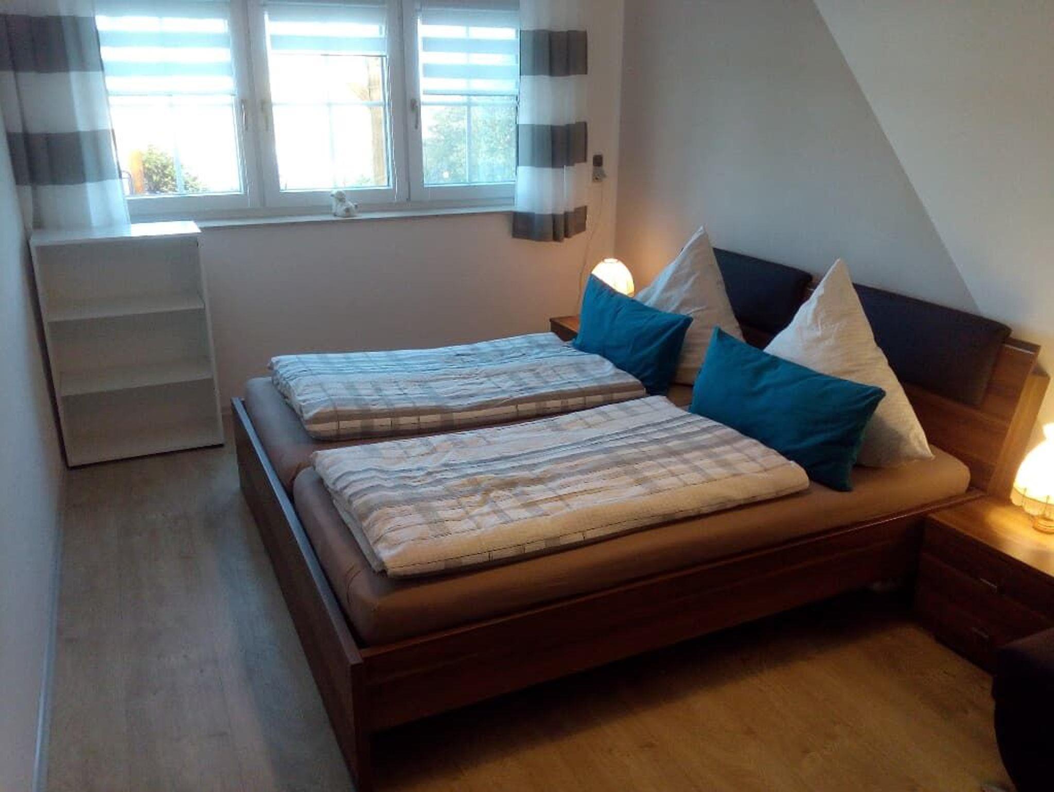 Die Wohnküche ist sehr komfortabel ausgestattet mit Herd, Backofen,Toaster, Kühlschrank, Geschirrspülmaschine, Mikrowelle, Wasserkocher, Kaffeemaschine und Radio. Außerdem vervollständigen eine Eckbank, Stühle, Tisch sowie ein Kanapee die Kücheneinrichtung. Eines der geräumigen Schlafzimmer beinhaltet ein Doppelbett (1,80 Meter Breite), einen großen Kleiderschrank, eine Kommode, eine Couch mit Tisch sowie SAT-TV. In einem weiteren Schlafraum am anderen Ende der Ferienwohnung befinden sich ein Doppelbett (1,80 Meter Breite), eine Couch (auch als Schlafcouch ideal) mit Tisch sowie eine Kommode. Die Betten werden von uns bezogen, Sie brauchen also keine Bettwäsche mitzubringen. Das Badezimmer ist mit bodengleicher Dusche, Waschbecken, WC, Waschmaschine, Spiegelschrank und Föhn eingerichtet. Hand- und Duschtücher liegen im Badezimmerschrank für Sie bereit. Zur sportlichen Betätigung grenzt ein Tischtennis- und Dartraum direkt an die Ferienwohnung an. Auch ein Gefrierschrank befindet sich in diesem Raum. Alle Zimmer der Ferienwohnung haben große Fenster, teilweise mit Rollos.