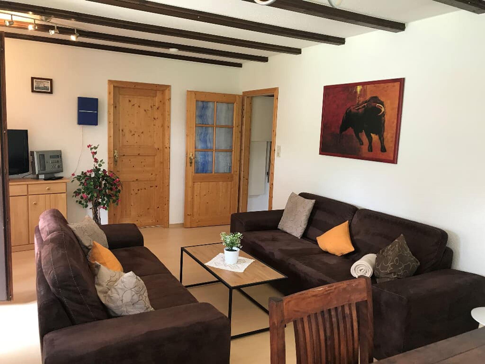 Flur, Wohnzimmer, Kochecke mit Essplatz, Doppelzimmer, Schlafzimmer mit Doppelbetten oder 2 Betten, Bad oder Dusche/WC. Terrasse.