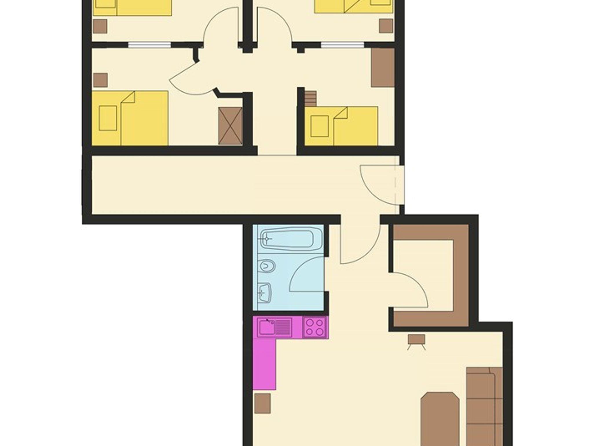 Elternschlafzimmern (jeweils mit Doppelbett) stehen zwei Kinderzimmer (einmal mit