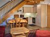 Das in Holzbauweise gebaute Ferienhaus Typ B2 ist ein 2-Zimmer-Maisonette-Appartementhaus für max. 4 Personen (ca. 50 qm, 1 Kinderbett für ein Kleinkind bis 2 Jahre kann zugebucht werden).