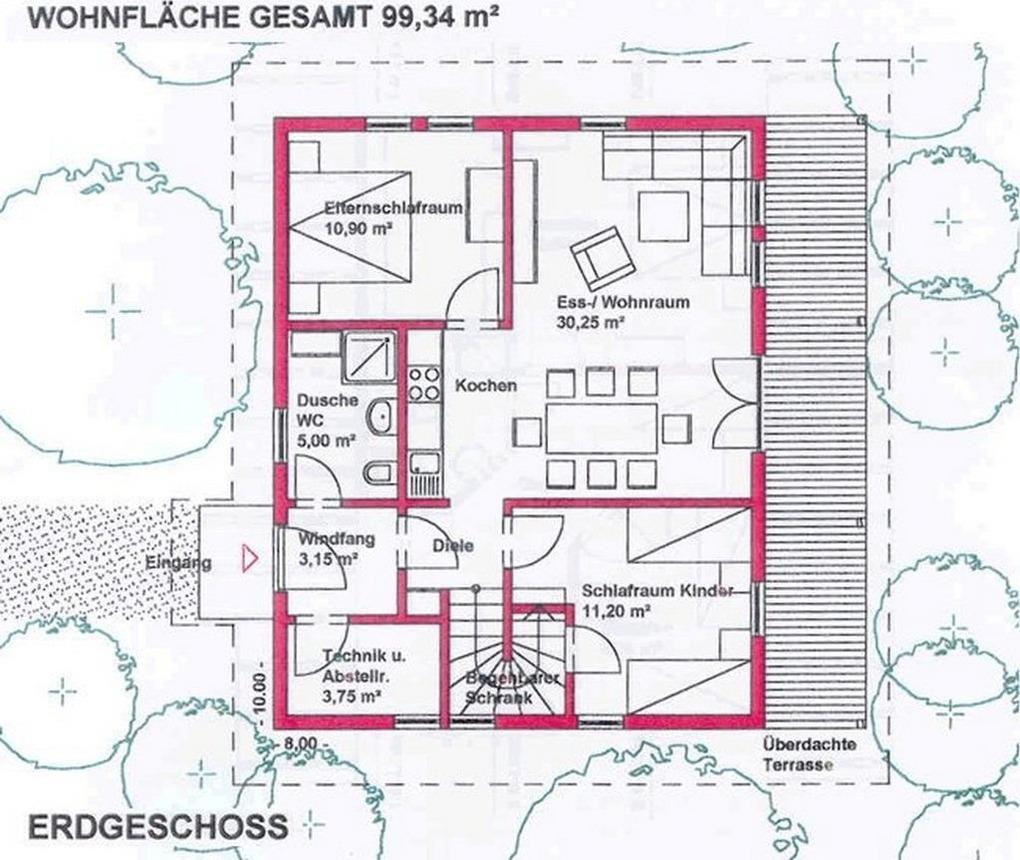 Das in Holzbauweise gebaute Ferienhaus Typ C ist ein Einzelhaus für max. 8 Personen (ca. 100 qm).
