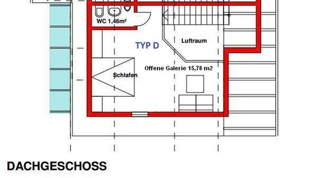 Im OG (über Treppe vom Wohnraum aus erreichbar): offene Galerie mit Doppelbett und gemütlich wirkender Dachschräge, ein weiteres WC.