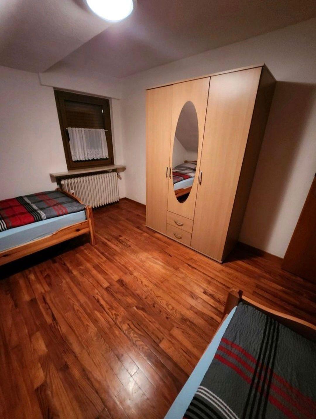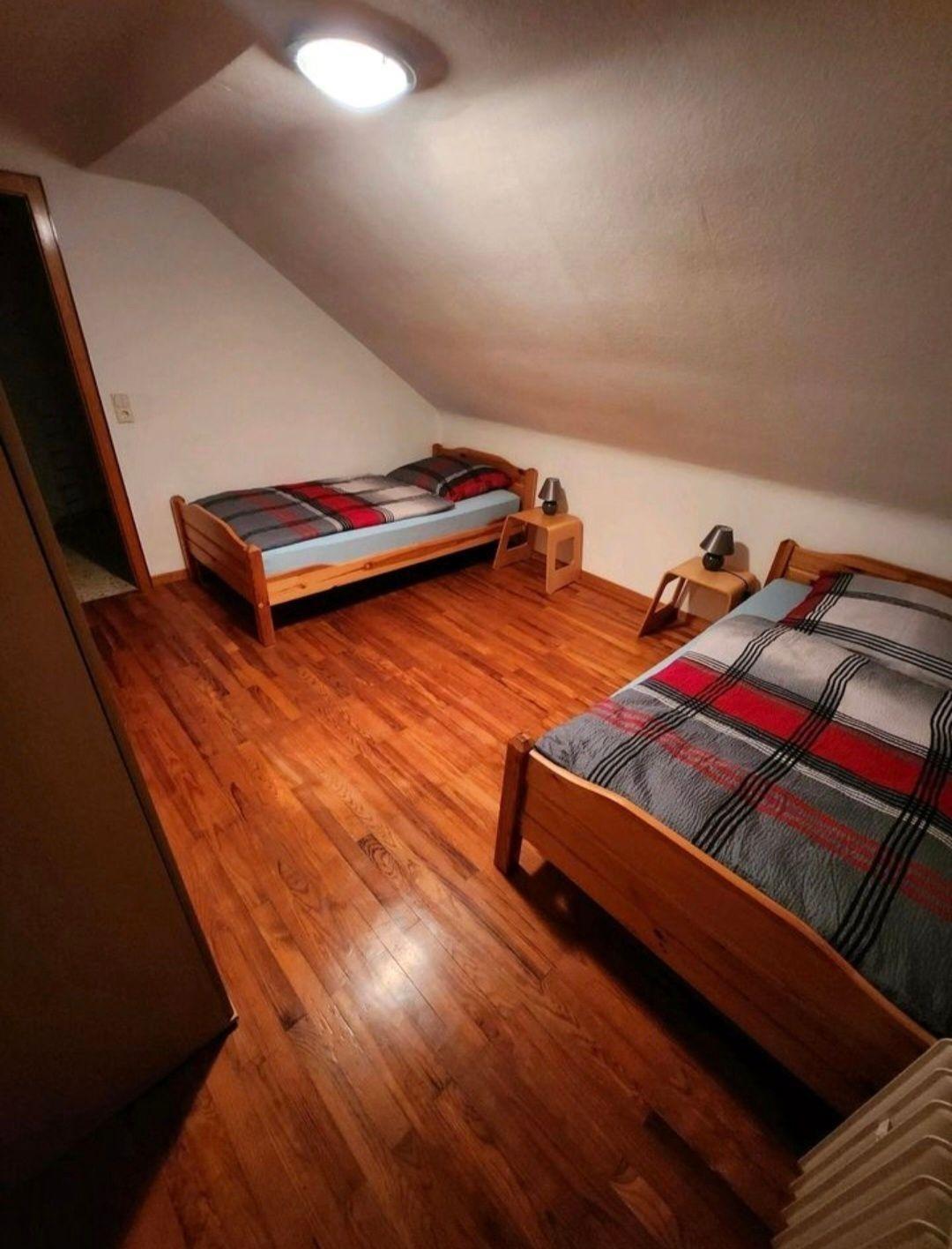 Ca. 80 qm, 3 Zimmer mit insgesamt 5 Schlafgelegenheiten, Flur, Küche und Bad.