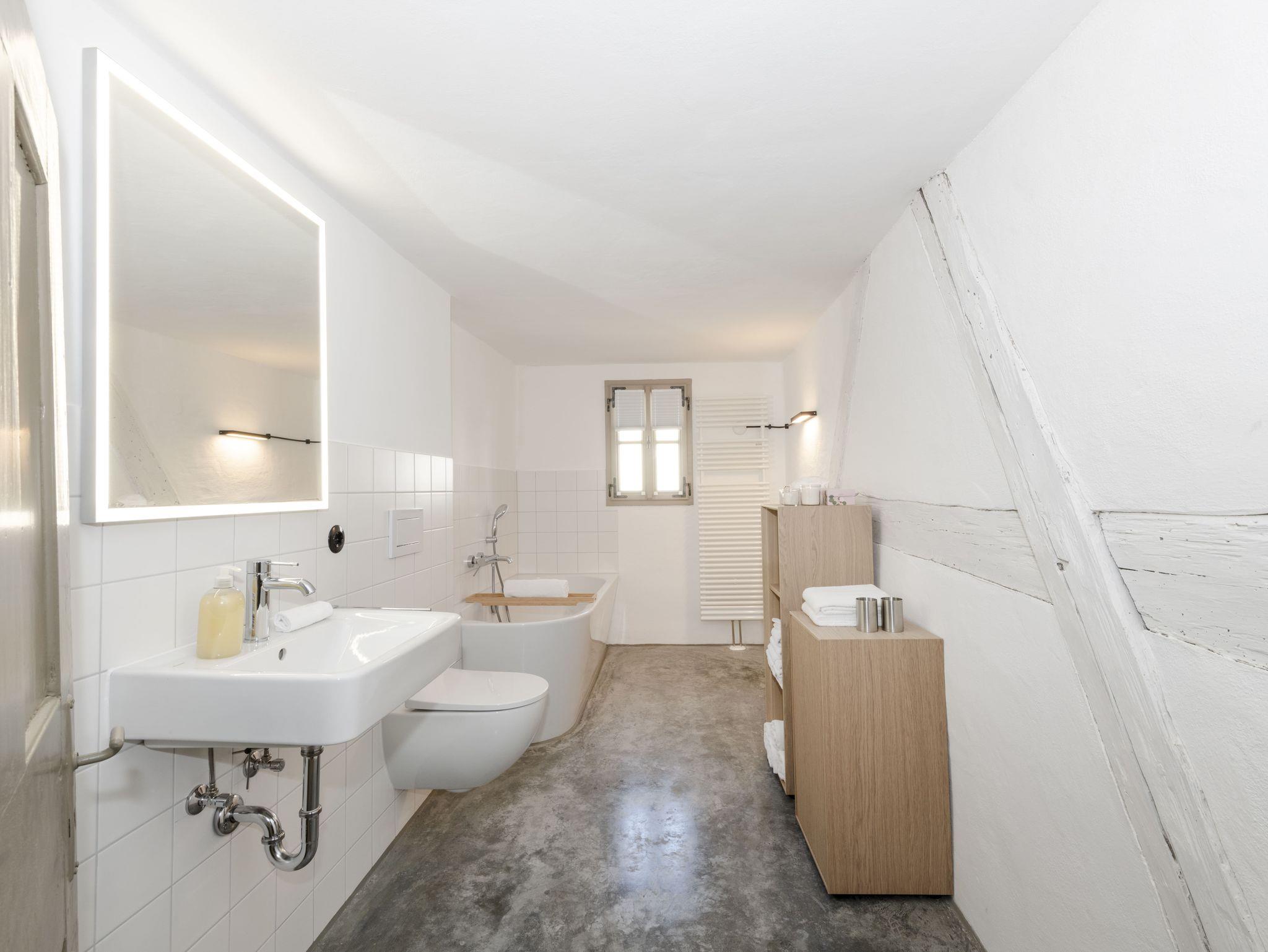 Charmantes Wohnen für Liebhaber alter Häuser in einem liebevoll sanierten Fachwerkhaus mit schiefen Wänden, engen Treppen und alten Balken – modern und funktionell eingerichtet! Tolle, ruhige Lage im Herzen der Altstadt. Das Gästehaus St. Joseph ist ca. 200 m entfernt. Restaurants, Sehenswürdigkeiten und Einkaufsmöglichkeiten sind leicht zu Fuß erreichbar. Die Ferienwohnung ist mit zwei alten, etwas steilen Holzstiegen in das erste und zweite Obergeschoss verbunden.