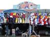Duschraum mit Großraumdusche und bodenebenen, rutschfesten Einstieg, Spiegel, Duschstuhl sowie Föhn und Waschmaschine, Wäscheständer, Radio, Bügeleisen, Bügelbrett und Erste Hilfe-Set.