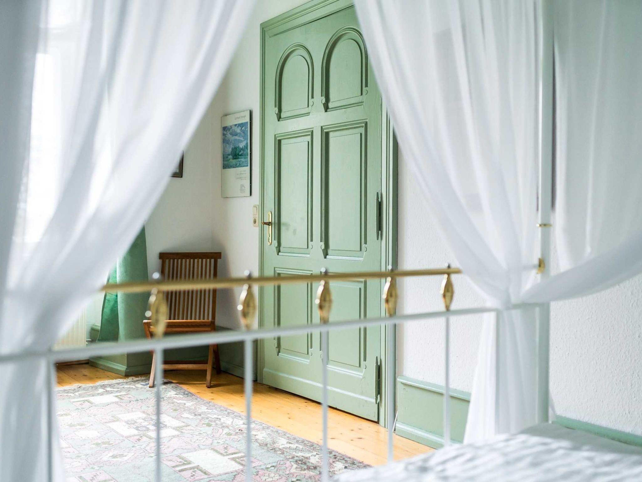 • Schlafzimmer mit Himmelbett (Doppelbett, Bettdecken Übegröße)