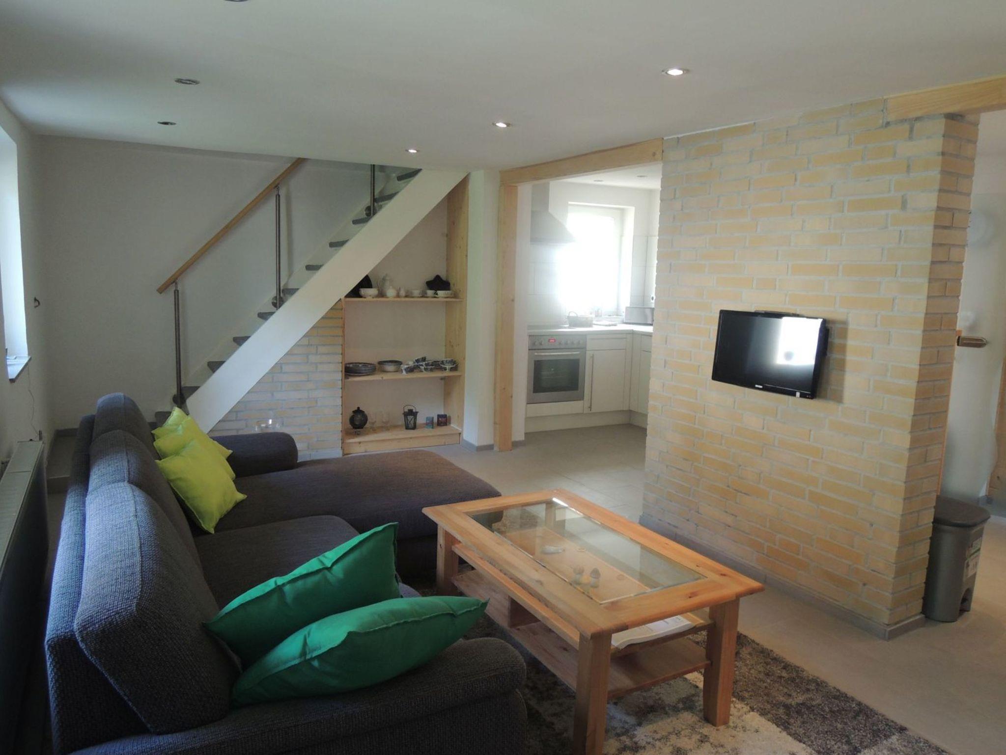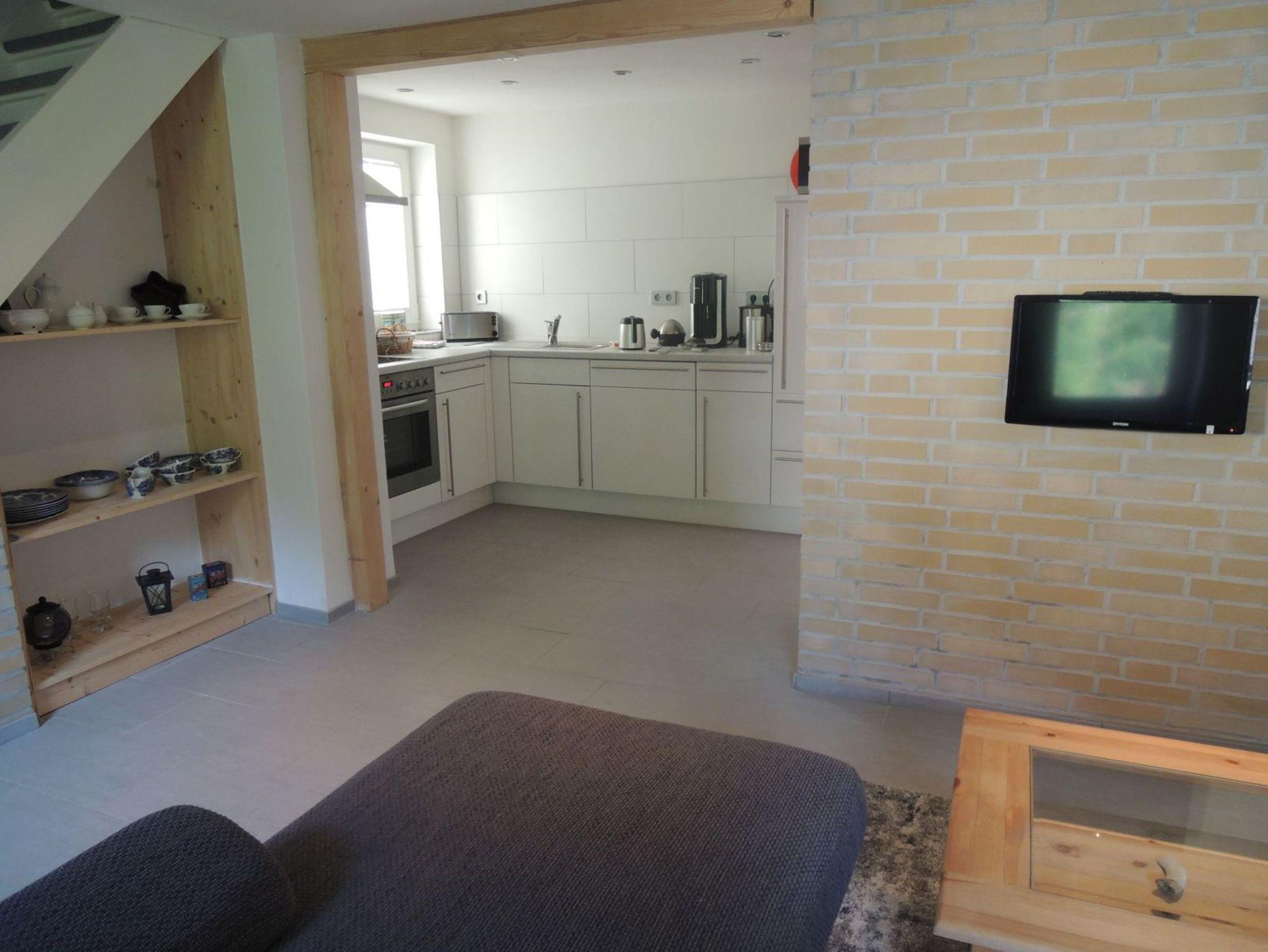 Das Ferienhaus Zur Eule besitzt ein Wohnzimmer mit gemütlichen Kaminofen (Erstausstattung 1 Korb Feuerholz inklusive), ein Schlafzimmer mit Doppelbett und einem begehbaren Kleiderschrank. Im Untergeschoss befindet sich das Bad mit zwei Waschbecken und ebenerdiger Dusche, im Obergeschoss gibt es ein zusätzliches WC. Bademäntel stehen auf Wunsch kostenfrei zur Verfügung.