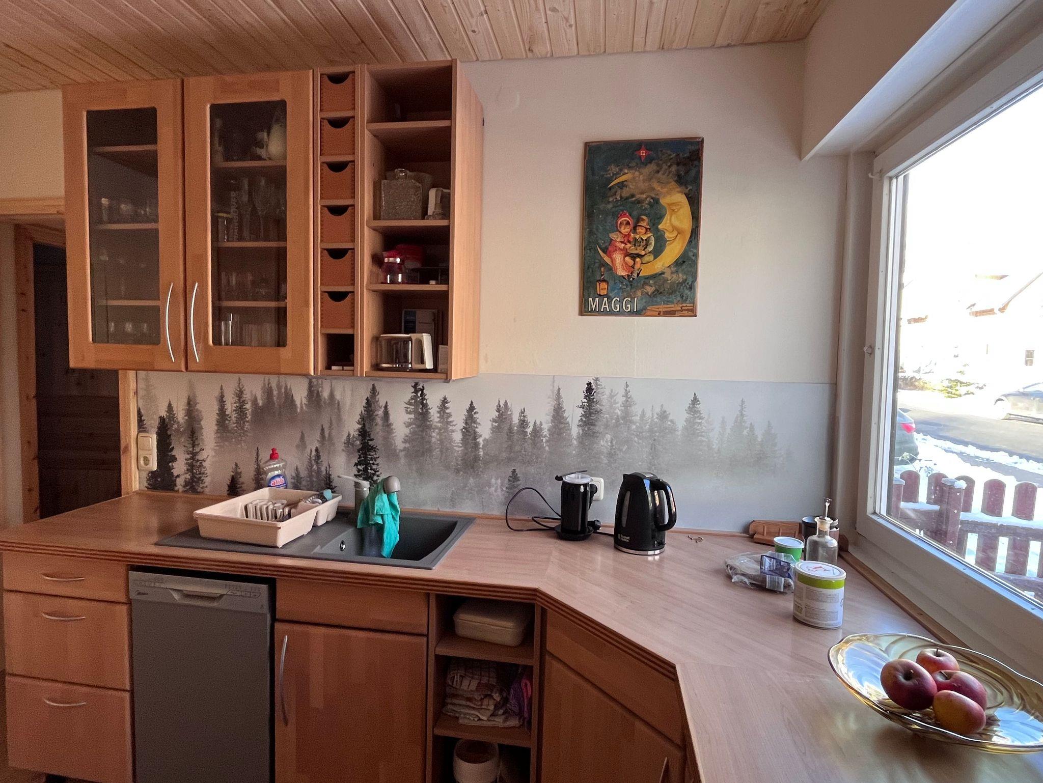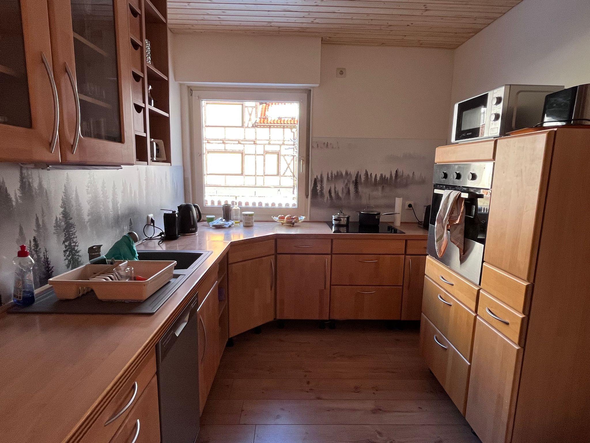 Das Chalet Waldstraße in Wieda verfügt neben einem Doppel- und einem Einzelzimmer über eine separate, gut ausgestattete Küche und ein Wohnzimmer mit Schlafcouch und Zugang zur Terrasse. Im Bad befindet sich eine Badewanne mit Duschvorhang.
