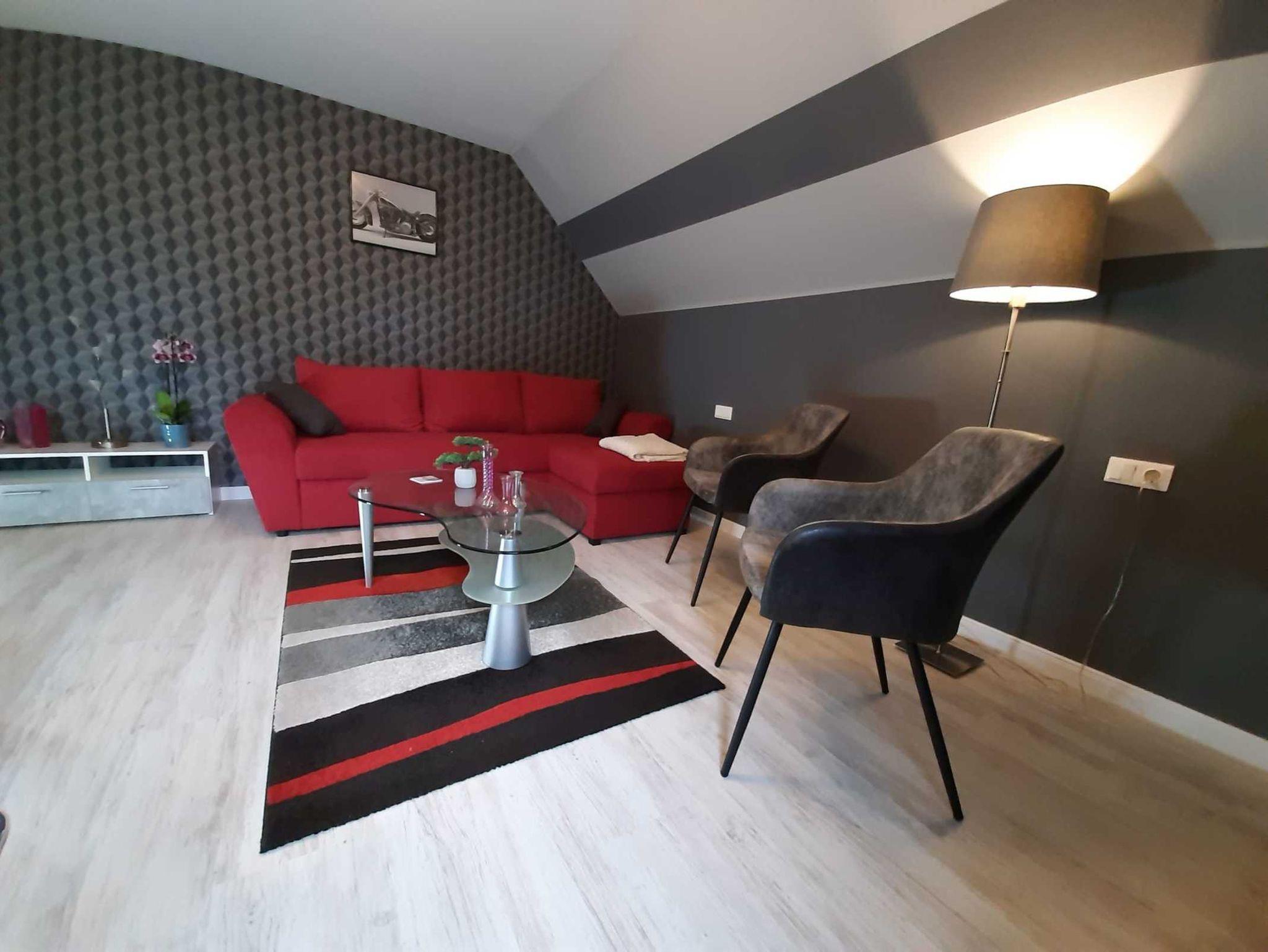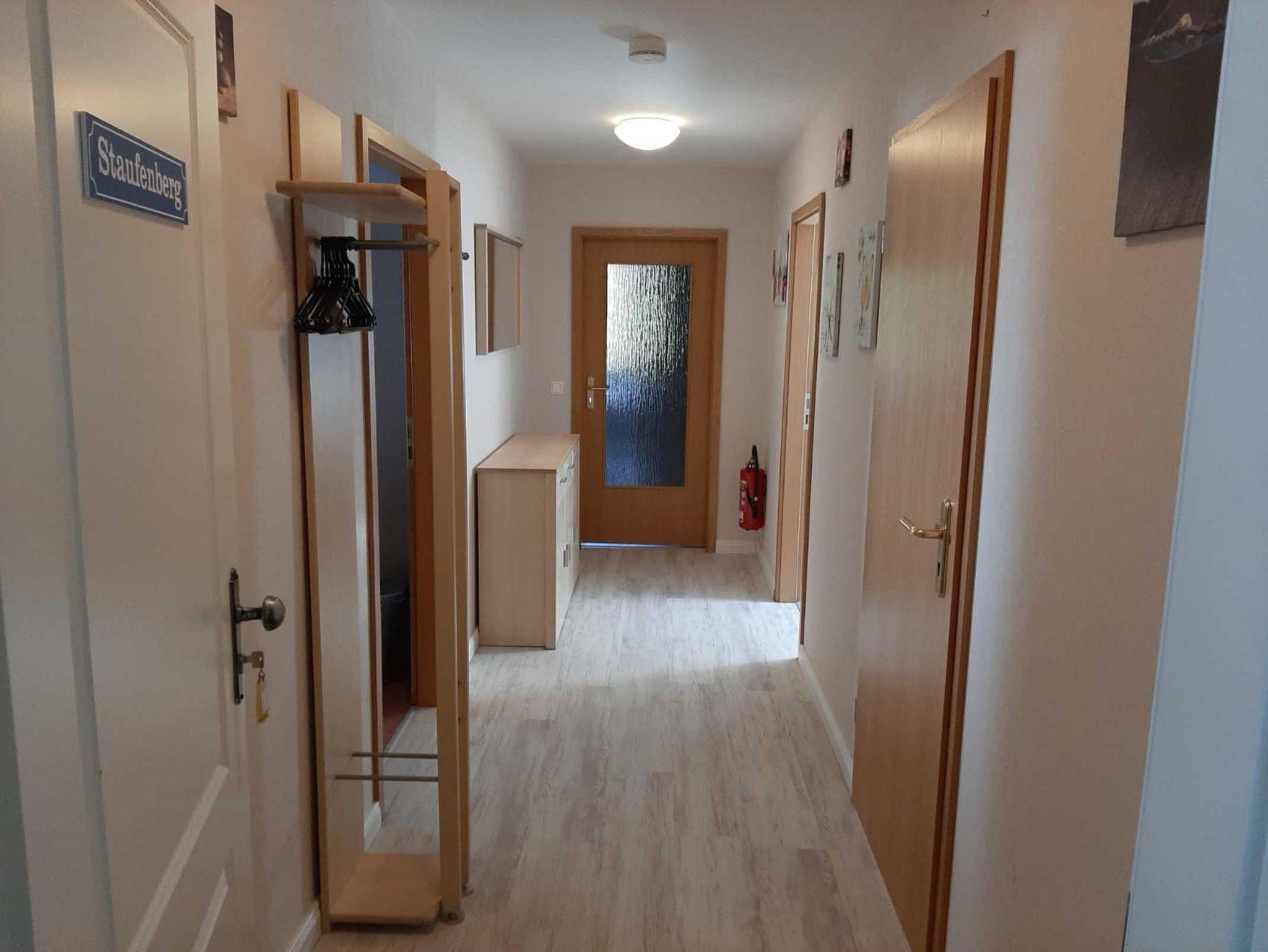 Die Wohnung Staufenbergverfügt über ein Wohnzimmer mit einem multifunktionalen Sitzecke und einem Smart-TV, ein Bad en-suite, ein Schlafzimmer mit einem Doppelbett mit Bad en Suite, ein Schlafzimmer mit zwei Einzelbetten und eine voll ausgestattete Küche mit einem Glaskeramik Kochfeld, Dunstabzugshaube, Backofen, Kühlschrank und Geschirrspüler.