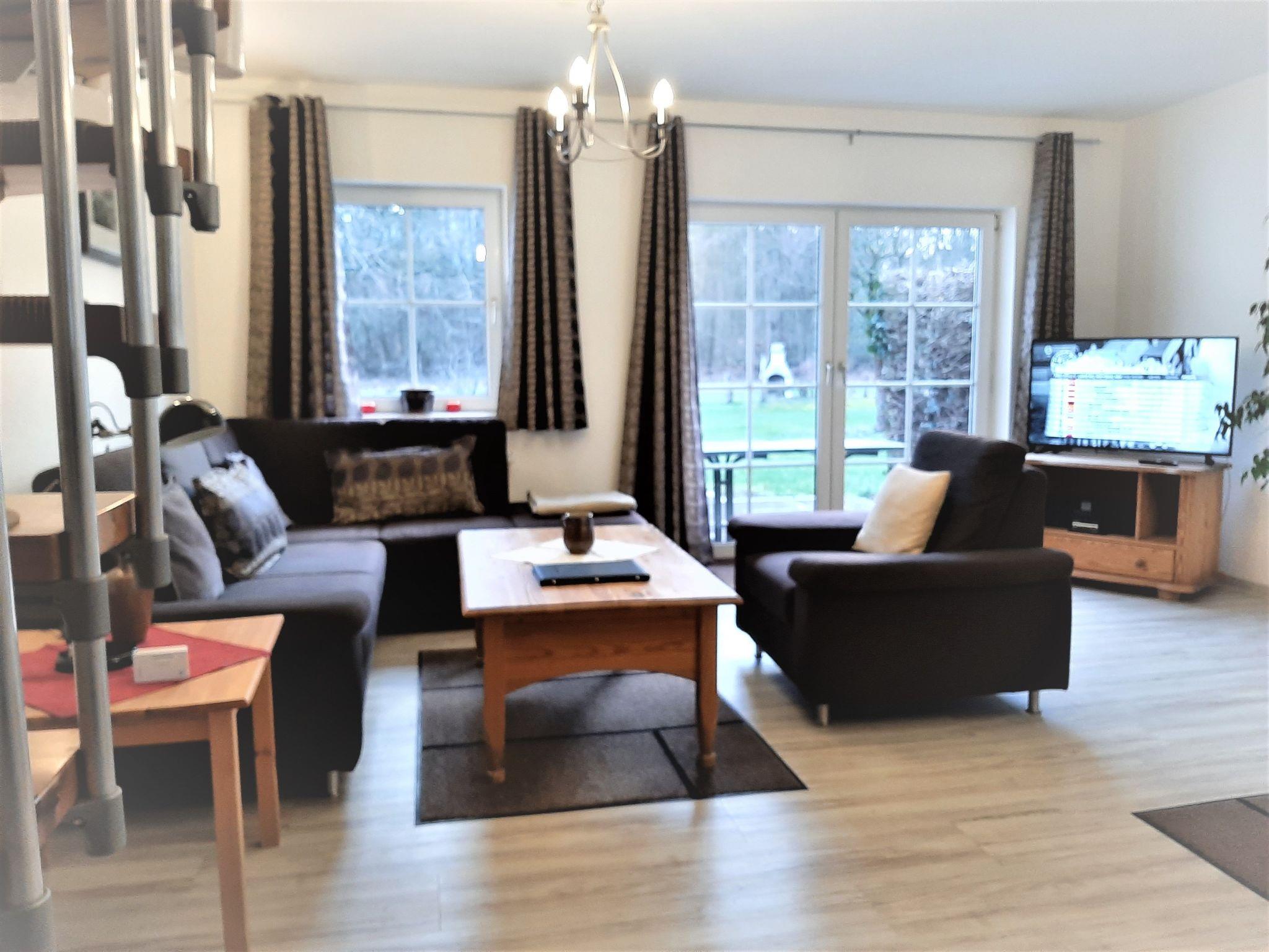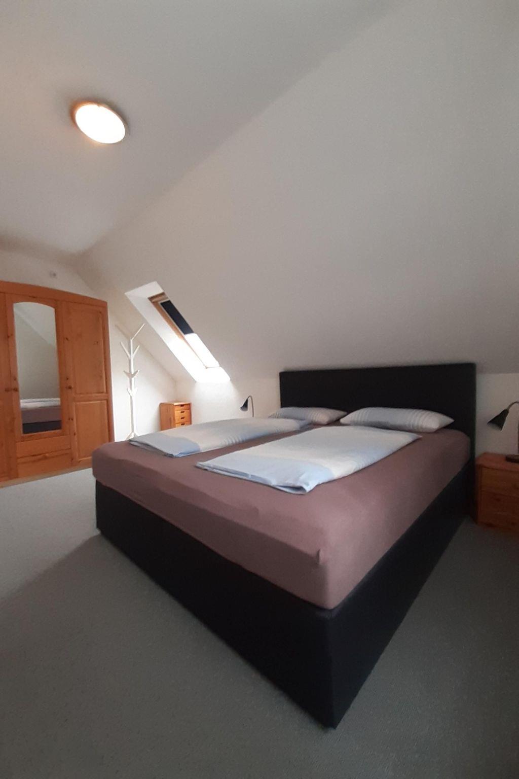 The flat, a top-rated four-star holiday flat with 75sqm on 2 levels, offers space for 2 - 4 people. It has 2 bedrooms, a spacious kitchen, guest WC, dishwasher, washing machine and tumble dryer (in a separate room), as well as a furnished terrace with direct access to the garden. The open-plan design and complete furnishings guarantee a comfortable and carefree stay. The living experience is completed by the provision of bed linen, towels, cots and highchairs at no extra cost.