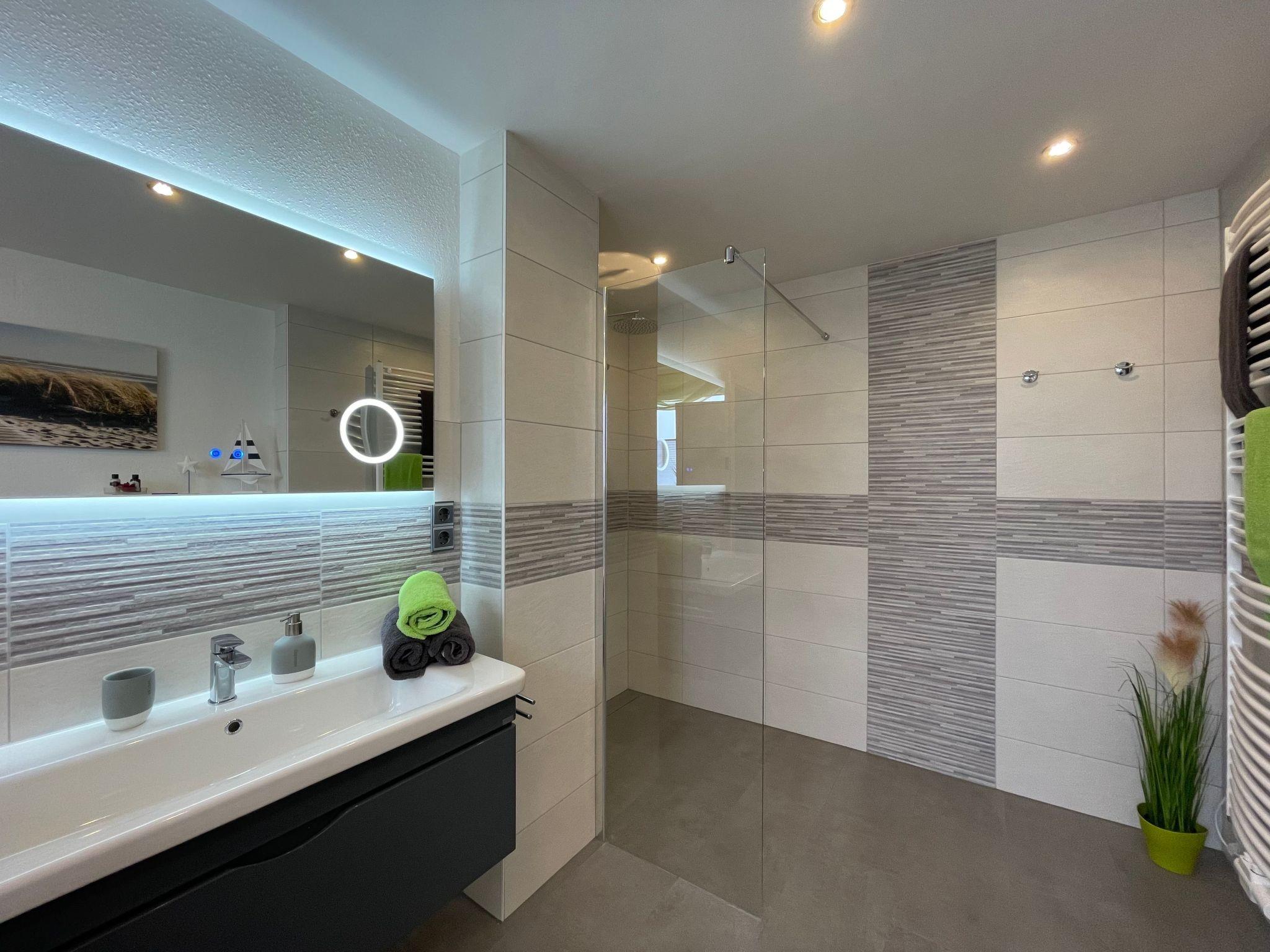 On the second floor you will find 2 bedrooms with comfortable box-spring beds, one bedroom has a large modern bathroom with a large walk-in shower and bathtub. The second shower room is adjacent to the second bedroom.