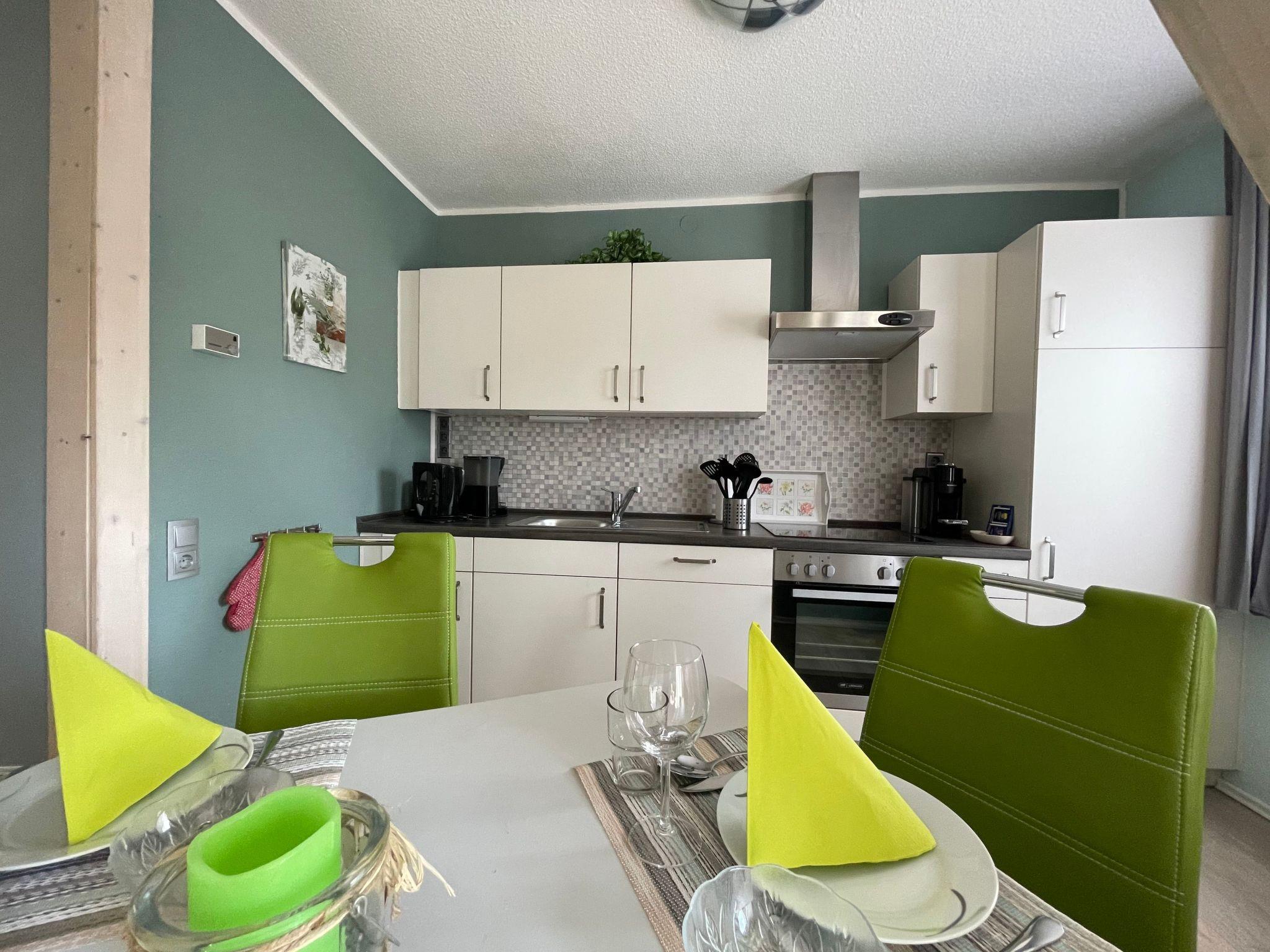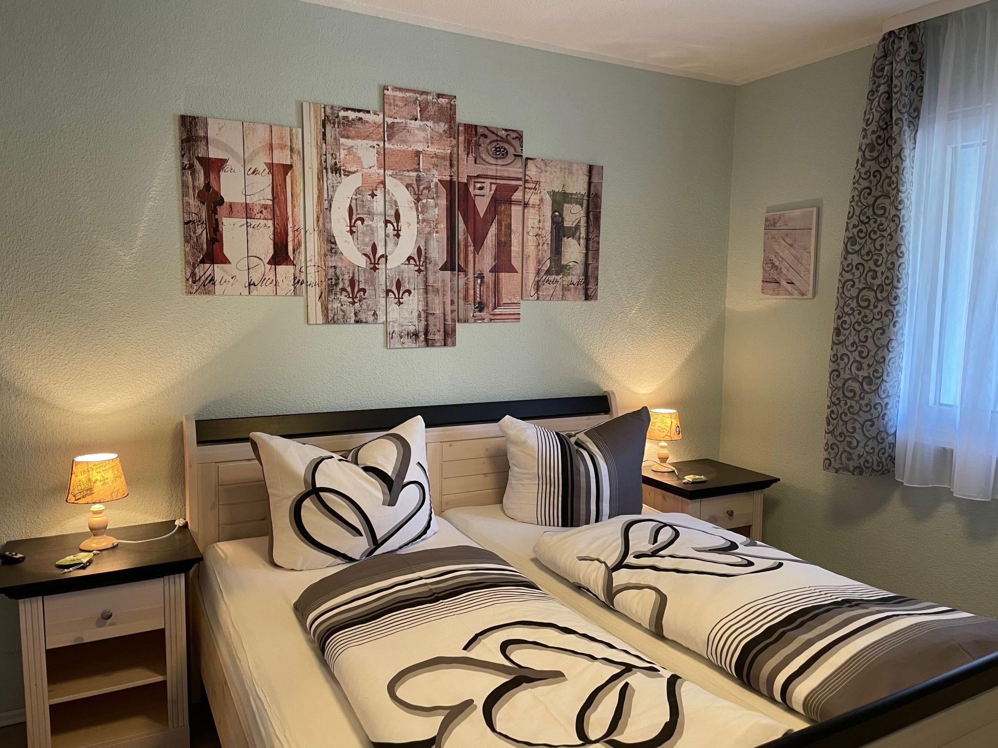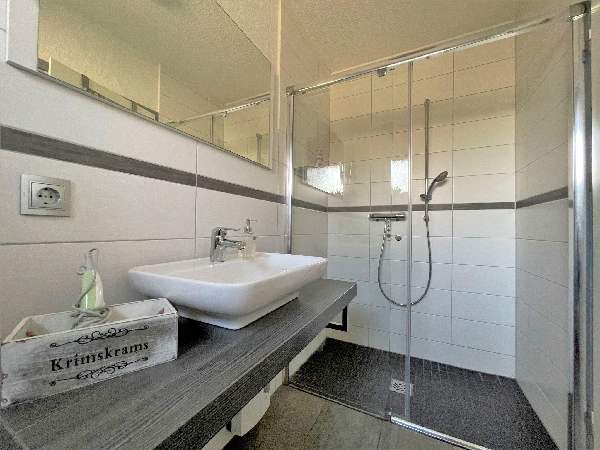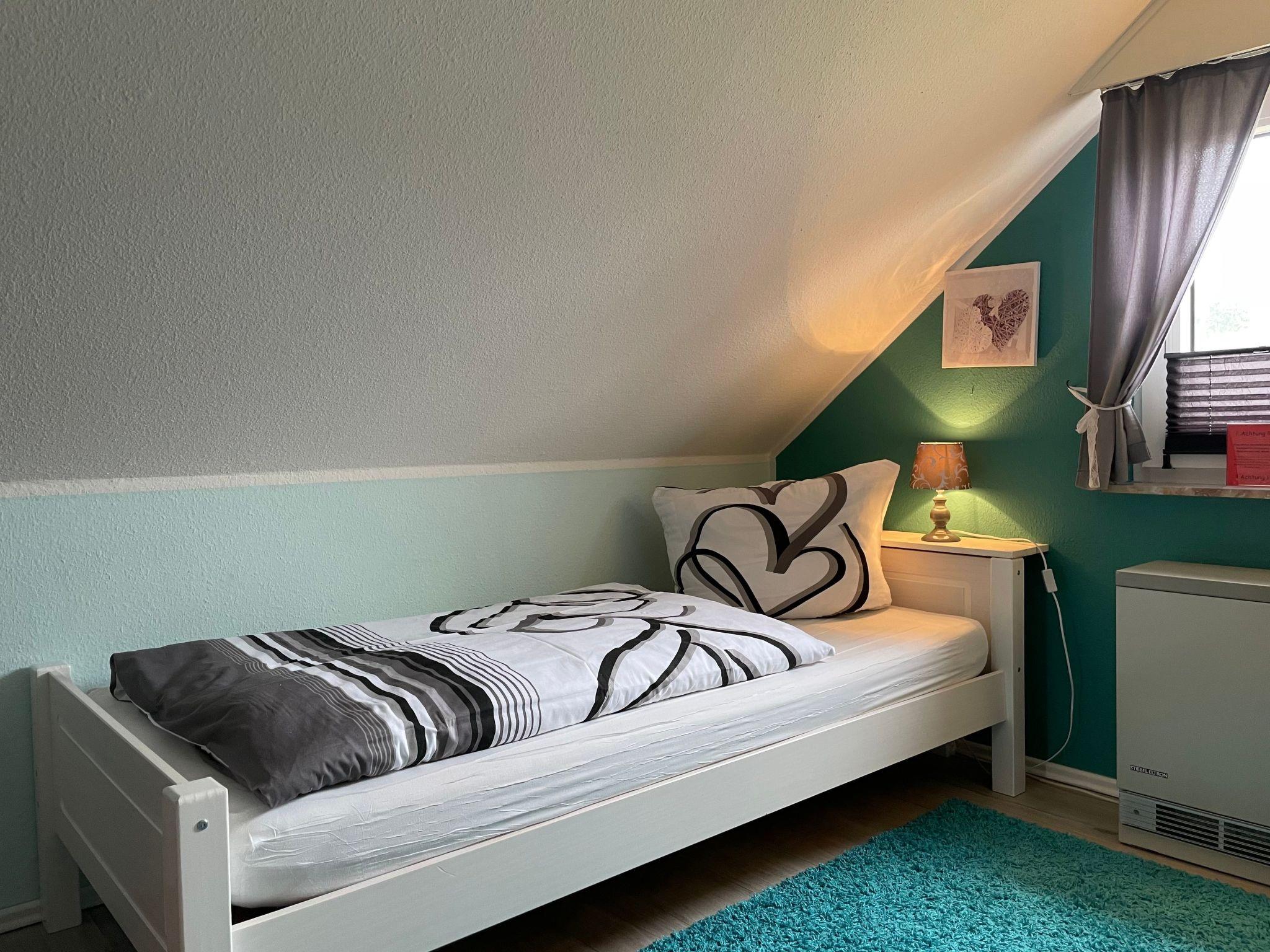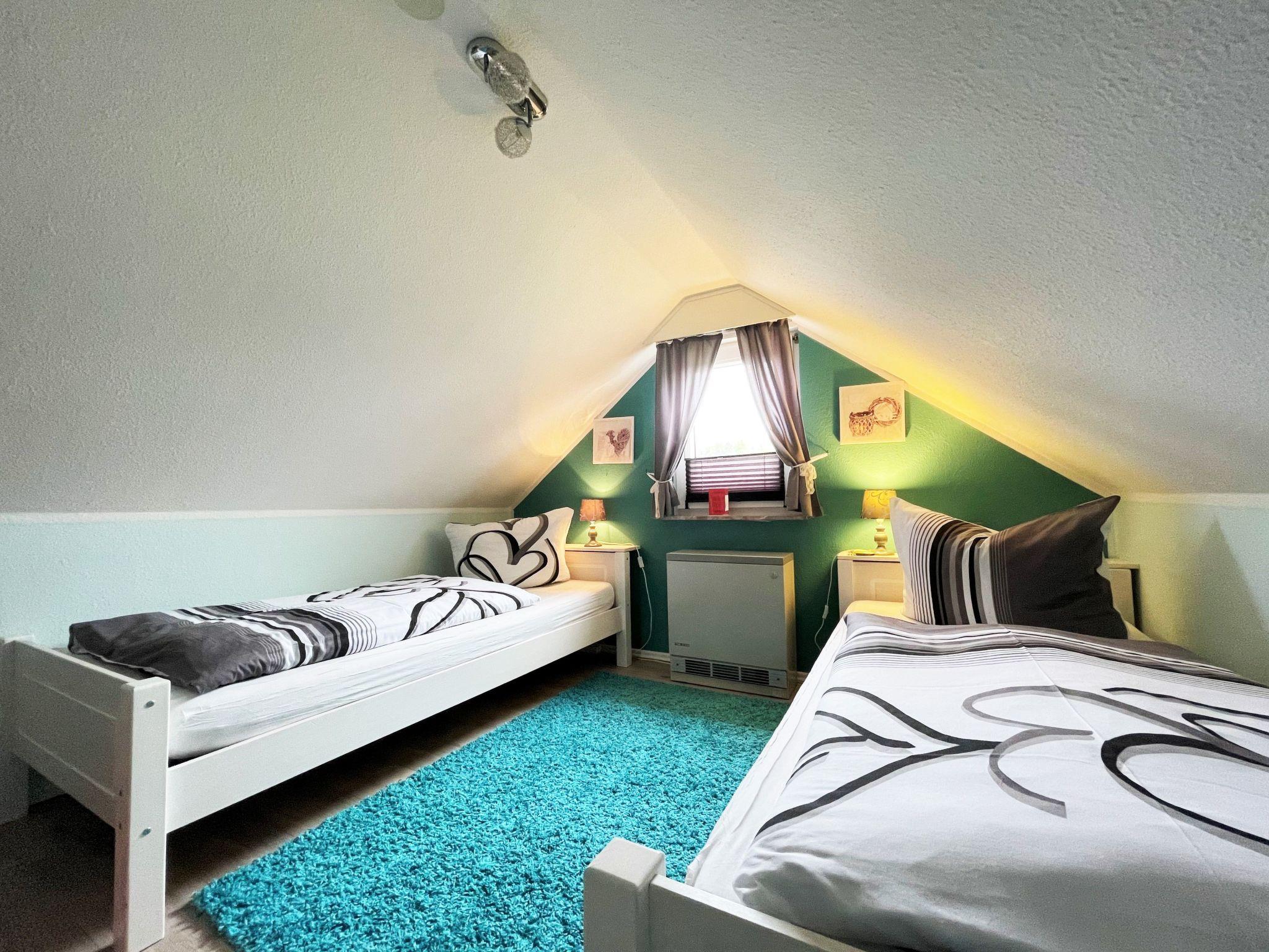 The house can accommodate four people and one child. The two floors provide everything you need for a relaxing holiday. The ground floor has a big living and dining room with satellite TV (including USB port) and a fully-equipped kitchen separated off spatially by beams, a big bedroom with a double bed (180 x 200cm), and a bathroom. The other two bedrooms are on the upper floor, one with a single bed (90 x 200cm) and a balcony, and one with two single beds (90 x 200cm). The kitchen is equipped with a stove, oven, coffee machine, dishwasher and fridge with freezer compartment. Wireless Internet access is available throughout the house. The house has night storage heating.