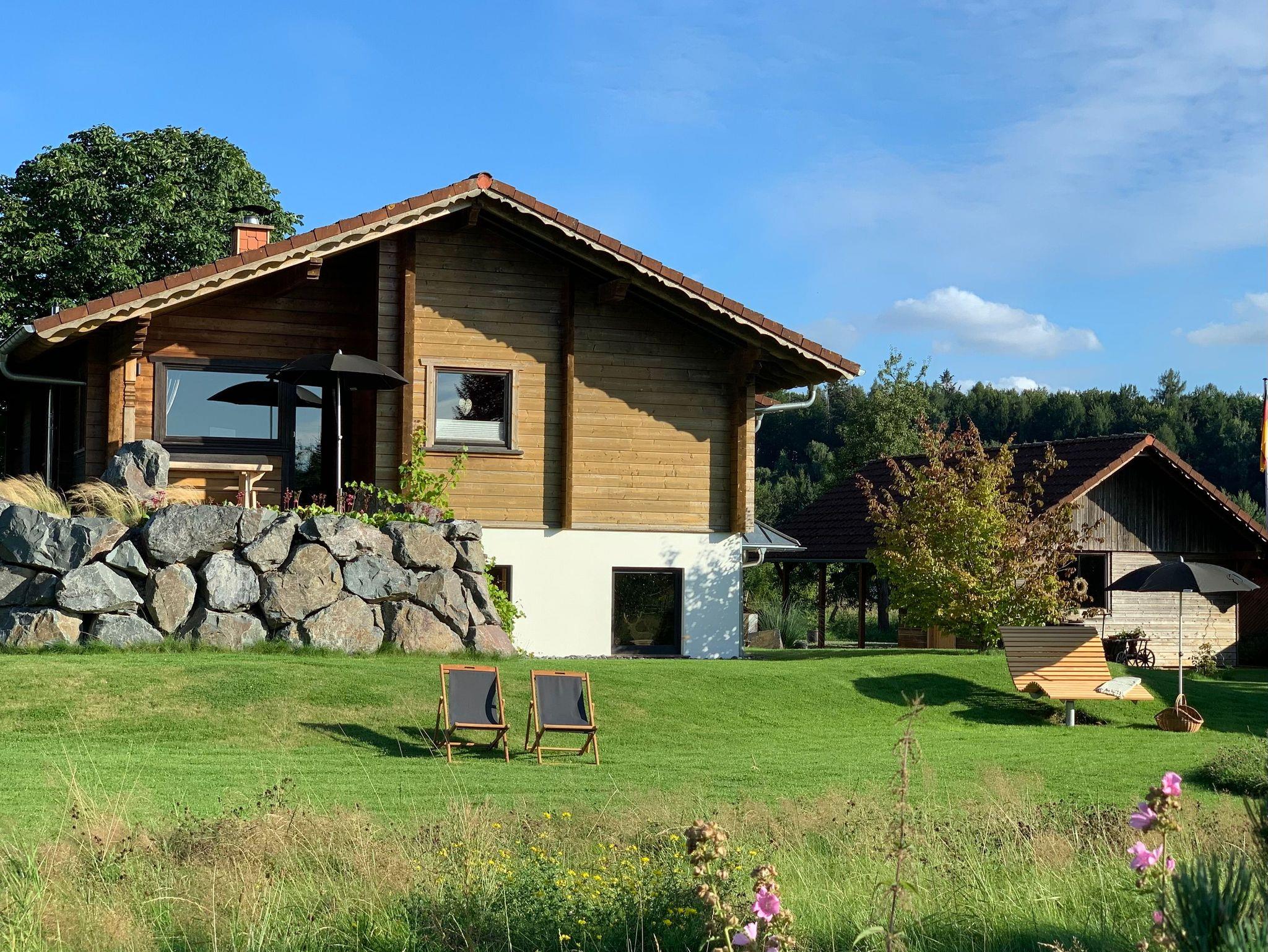 Erleben Sie in unserem Holzhaus einen erholsamen Urlaub mit der Natur. In 2 Ferienwohnungen mit liebevoller und hochwertiger Ausstattung zur Ruhe kommen und Energie tanken. Im Sommer können Sie auf der Liegewiese auf einem Waldsofa entspannen und mit dem Milan in Gedanken davon schweben, oder in der Blumenwiese wandeln und einen Blumenstrauß pflücken. Für unsere Gäste haben wir Hochbeete mit Kräutern und kleinen Gemüsen im Garten.
