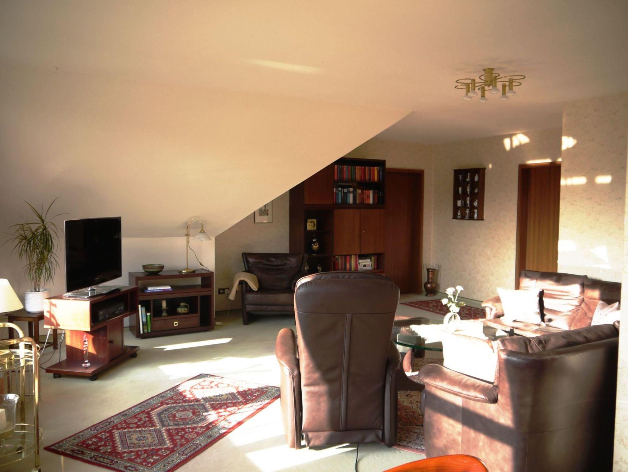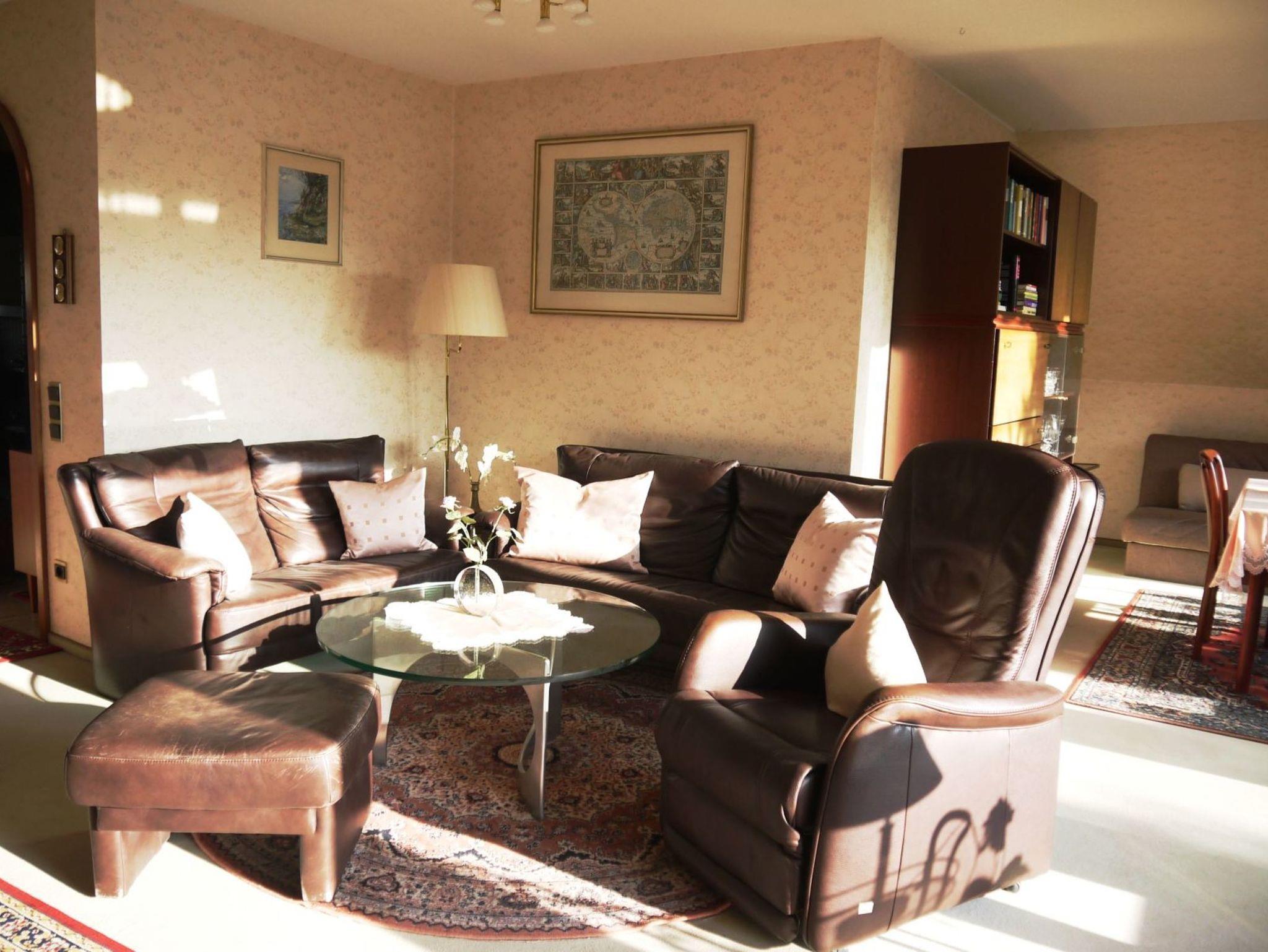 bequeme Sitzgruppe mit Couch und Fernsehsessel, Schlafsofa, Esstisch, Flachbildfernseher