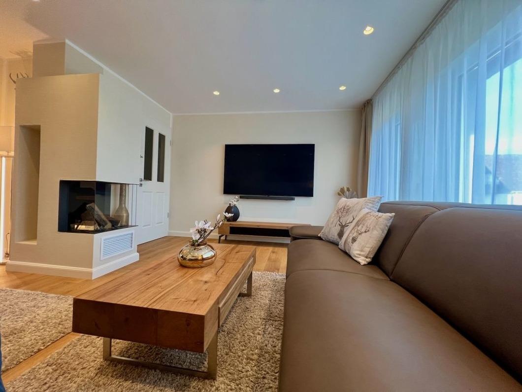 Bei einem schönen Glas Wein vorm Kamin oder einem leckeren Abendessen im stilvoll eingerichteten Essbereich lässt sich ein ereignisreicher Tag erholsam beenden. Die großzügige Terrasse im Garten lädt dazu ein, die Sonne zu genießen oder den Tag mit einem schönem Grillabend ausklingen zu lassen..