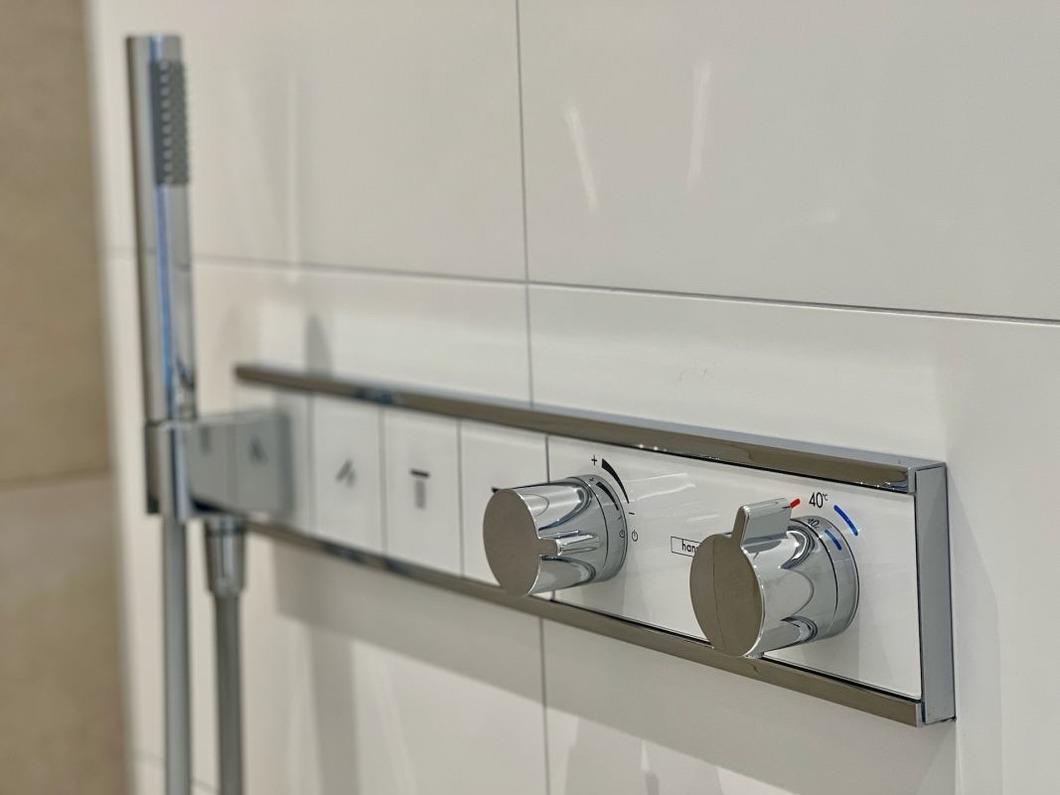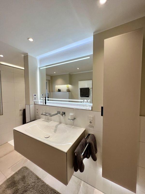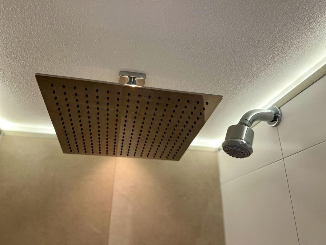 Das Badezimmer mit Dusche und WC ist modern und luxuriös ausgestattet. Fußbodenheizung und verschiedene Lichteffekte runden den entspannenden Effekt ab. Relaxen Sie bei einer heißen Regen-Dusche nach einem langen Wandertag oder genießen Sie einfach die Ruhe des Hauses und seiner Umgebung.