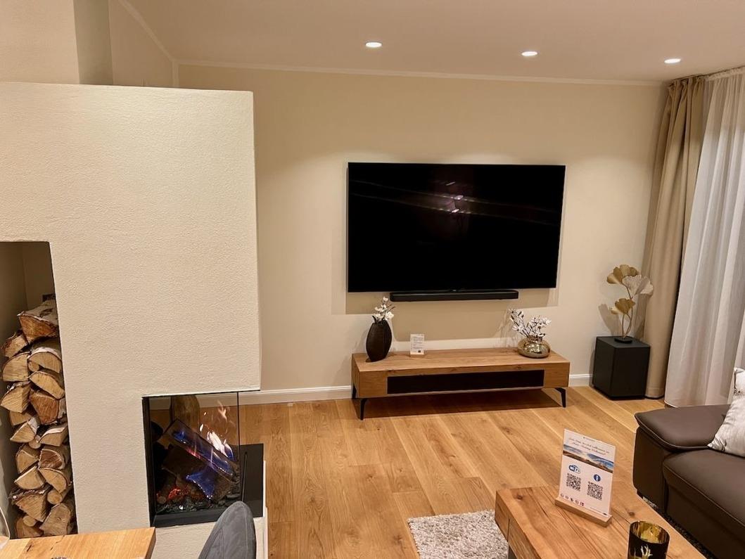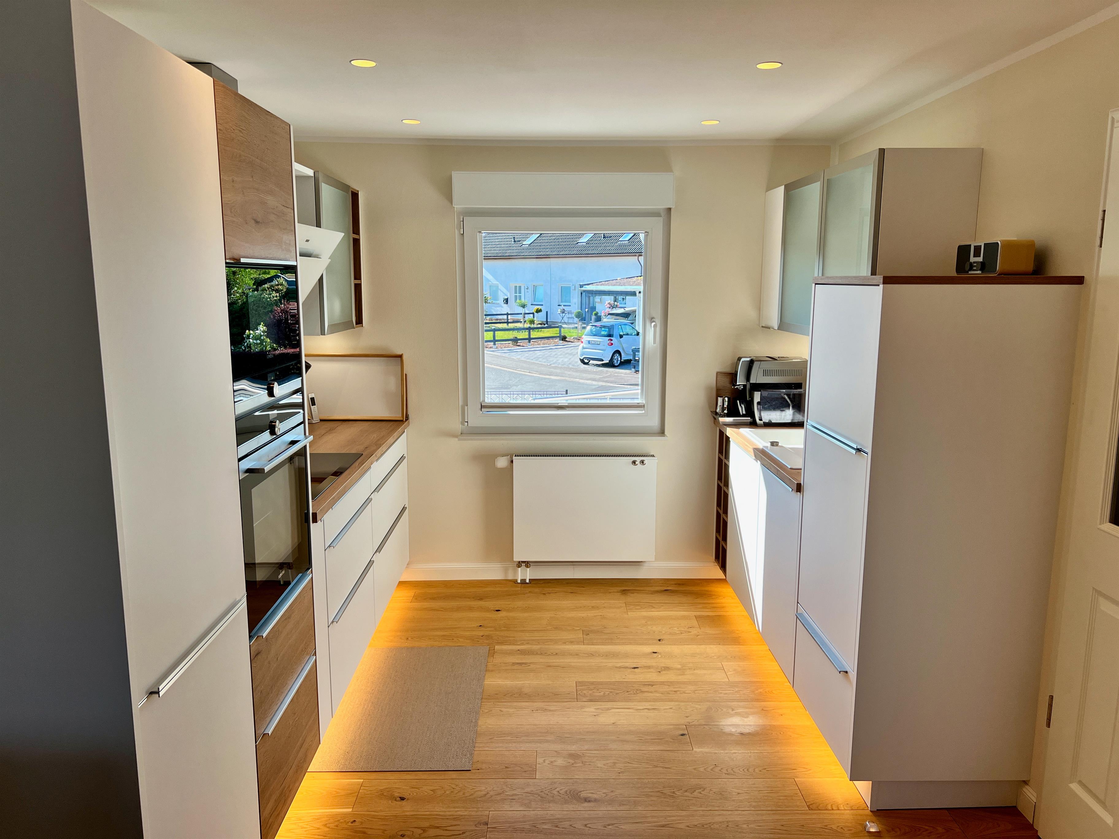 Den Feriengästen stehen mehrere Parkplätze direkt vor und neben dem Haus zur Verfügung. Beim Eintreten in das neue Feriendomizil führt der Weg durch einen kleinen Flur direkt zur Eingangstür der Wohnung 1. Nachdem man die Wohnung betreten hat, gelangt man direkt in die luxuriöse und moderne Küche, wo Sie bei einem Glas Sekt oder Tässchen Kaffee zunächst einmal ankommen können.