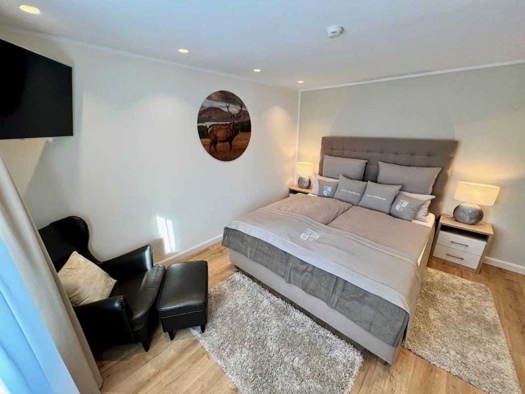 Auch die Schlafzimmer sind liebevoll, luxuriös und detailgetreu eingerichtet, die weiche und kuschelige Bettwäsche in Übergröße, das gemütliche Ambiente und die tolle Beleuchtung lässt sie erholsam schlafen. So stehen Ihnen hier noch alle notwendigen Dinge des Alltags - die auch im Urlaub nicht fehlen dürfen - zur Verfügung. Ob Sie ein Hemd aufbügeln oder kurz etwas reinigen möchten, es ist alles da, was man braucht.