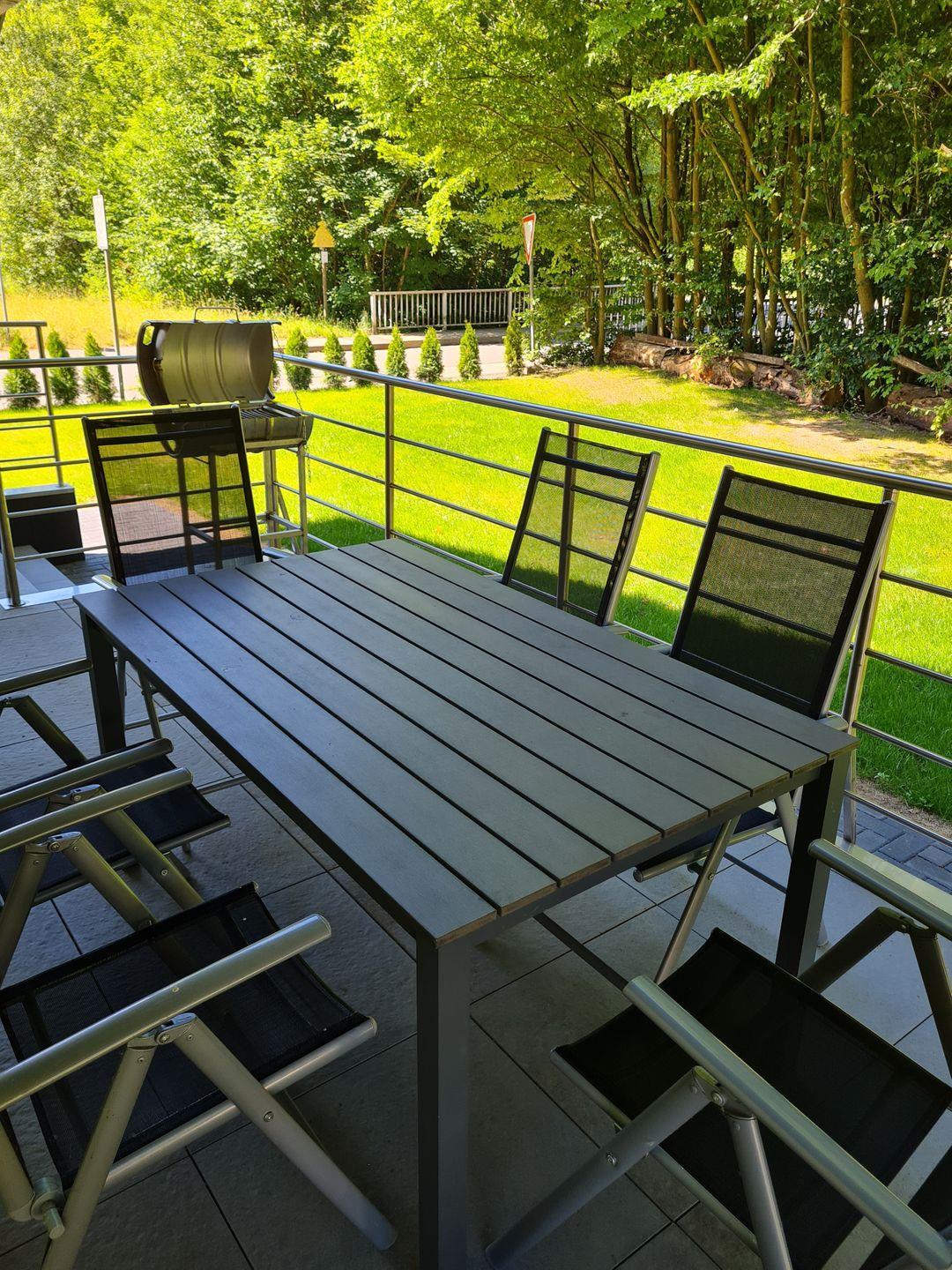 Auf der überdachten Terrasse können Sie mit Ihren Lieben Grillabende veranstalten oder am Morgen in Ruhe eine Tasse Kaffee genießen. Der große Garten ist der ideale Platz damit sich die kleinen Gäste austoben können. Direkt vom Garten aus gelangen Sie über eine Treppe an den Bachlauf der Zorge. Dort können Sie auf der rustikalen Bank den Tag Revue passieren lassen.