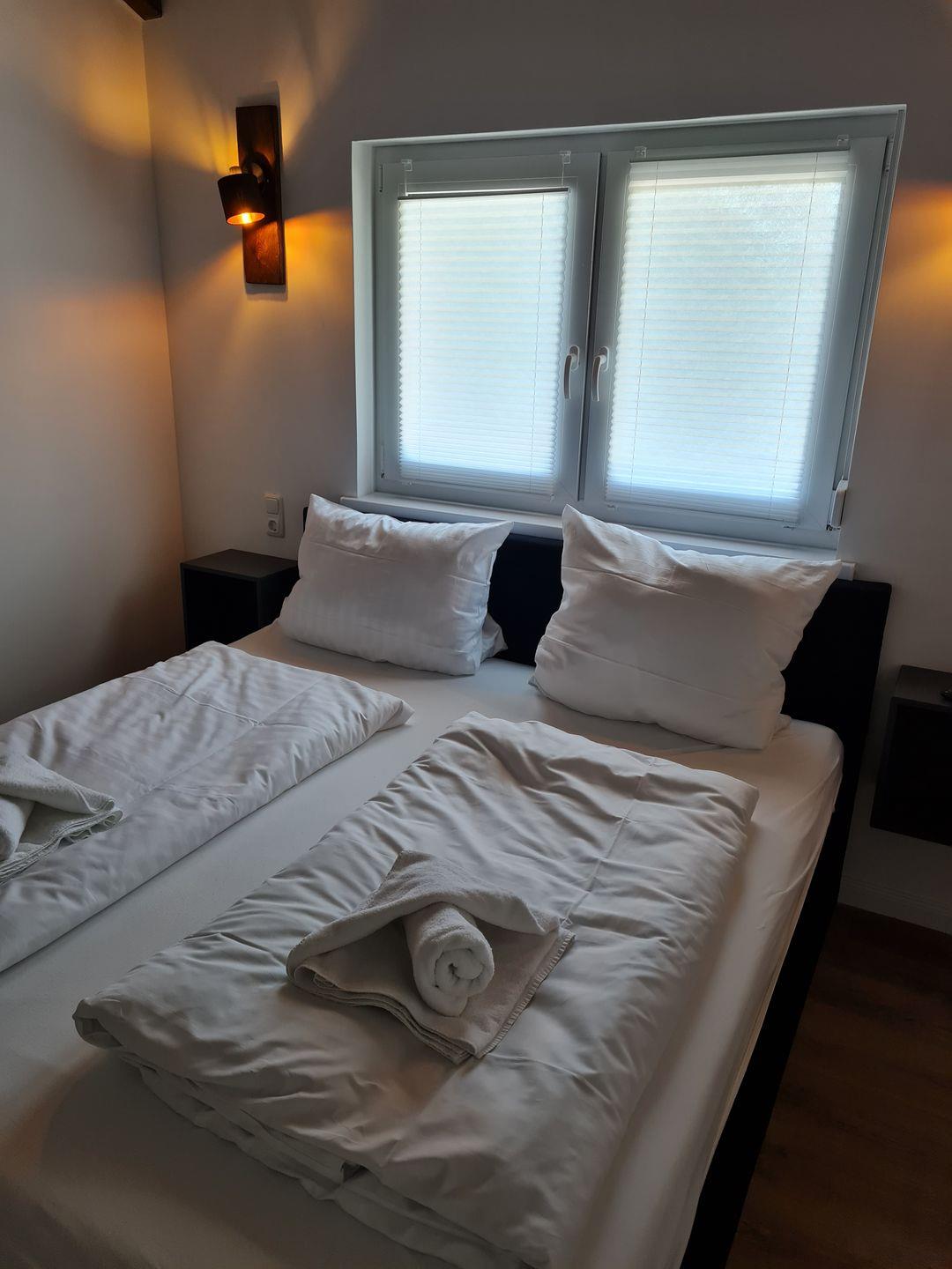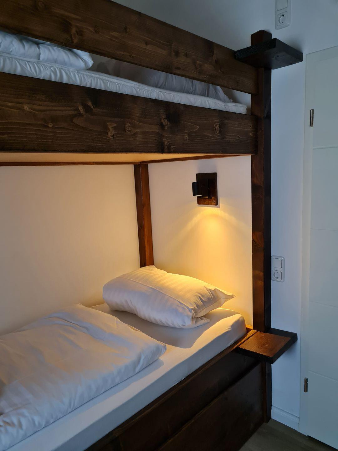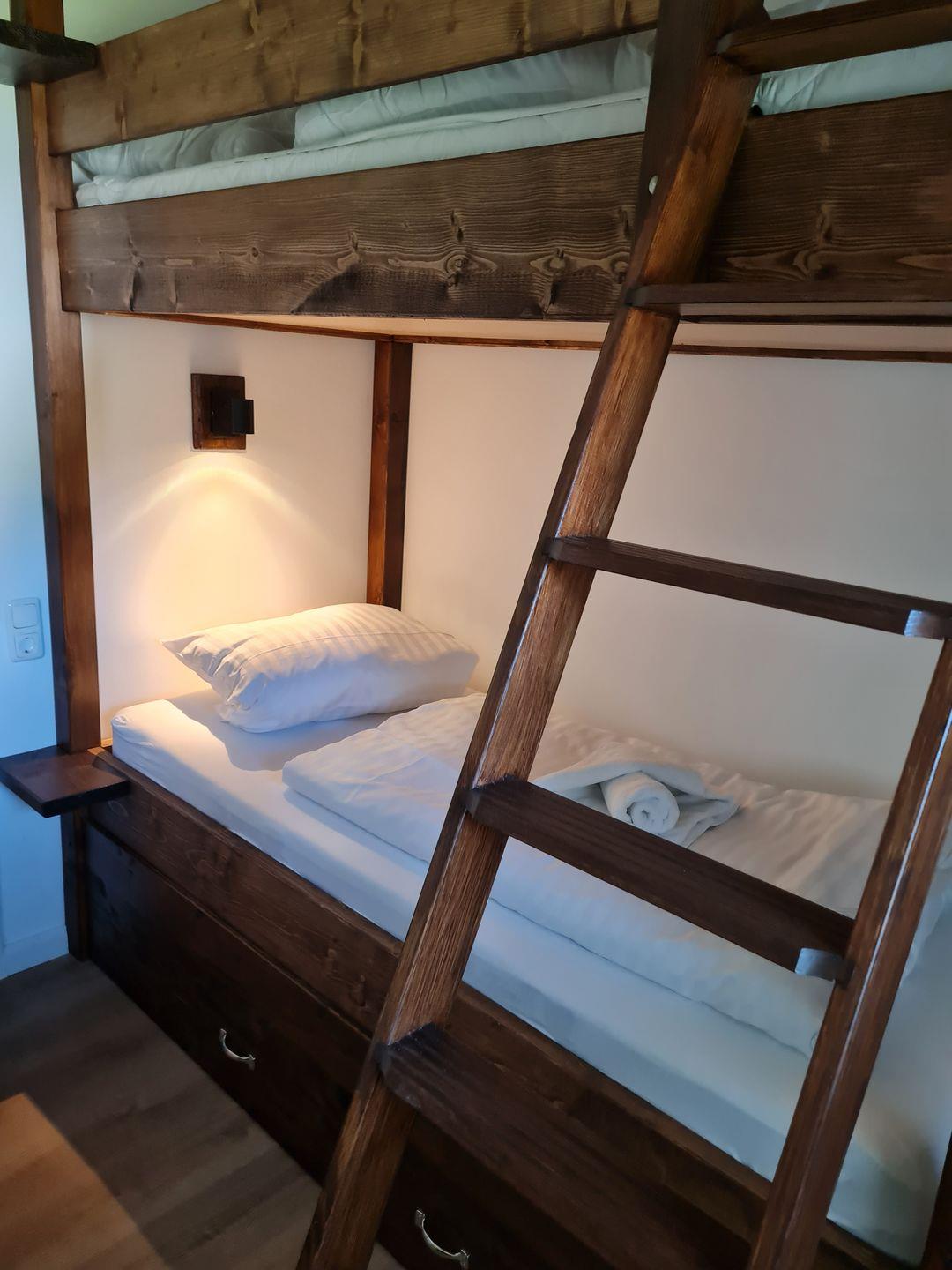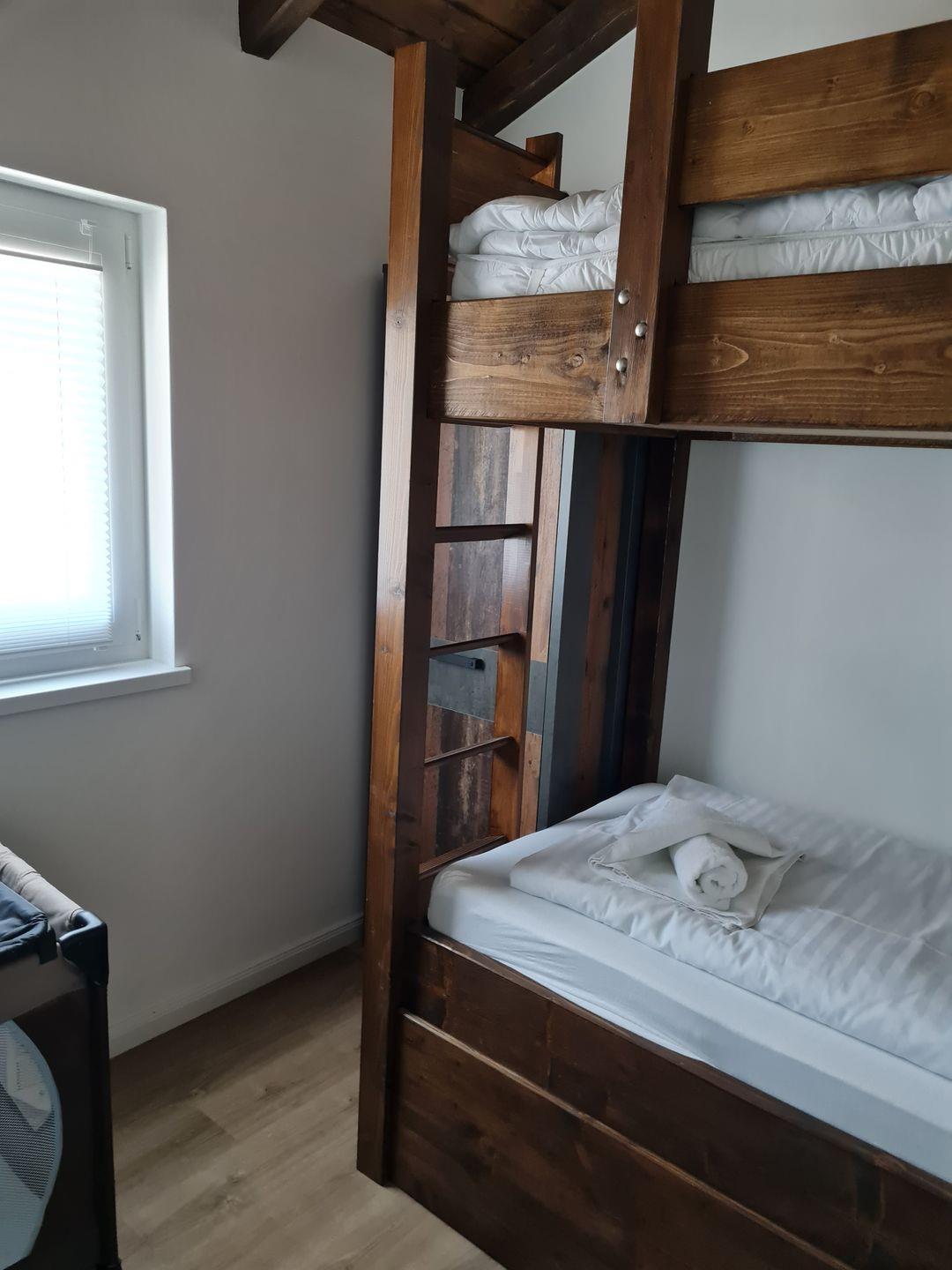 Es bietet viel Platz für 8 Personen. Das Haus verfügt über insgesamt 4 Schlafzimmer. 2 Schlafzimmer verfügen jeweils über ein Boxspringbett, Kleiderschrank und Fernseher. Zwei Schlafzimmer verfügen über jeweils ein Etagenbett mit Schrank, Kommode und Fernseher. Zusätzlich verfügt ein Schlafzimmer über ein Baby Reisebettchen.