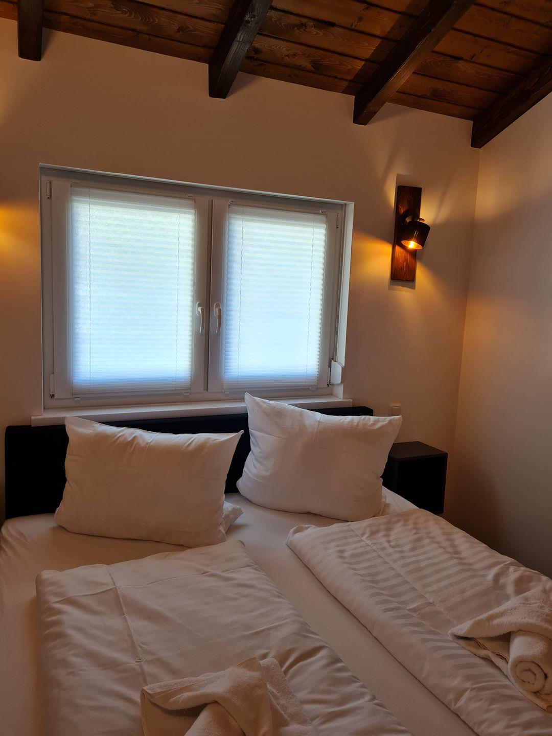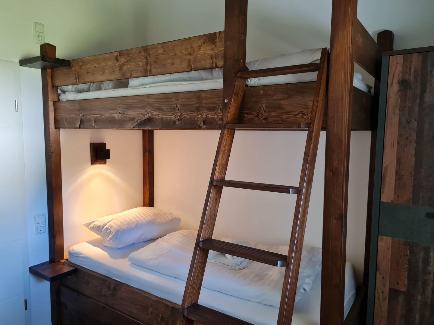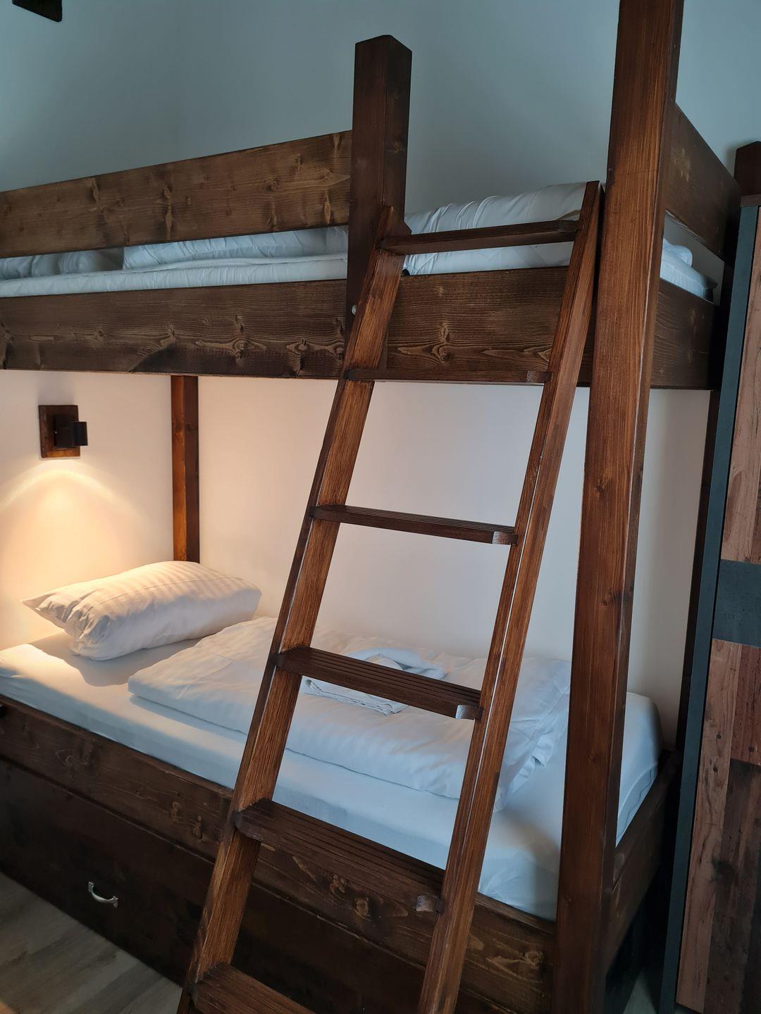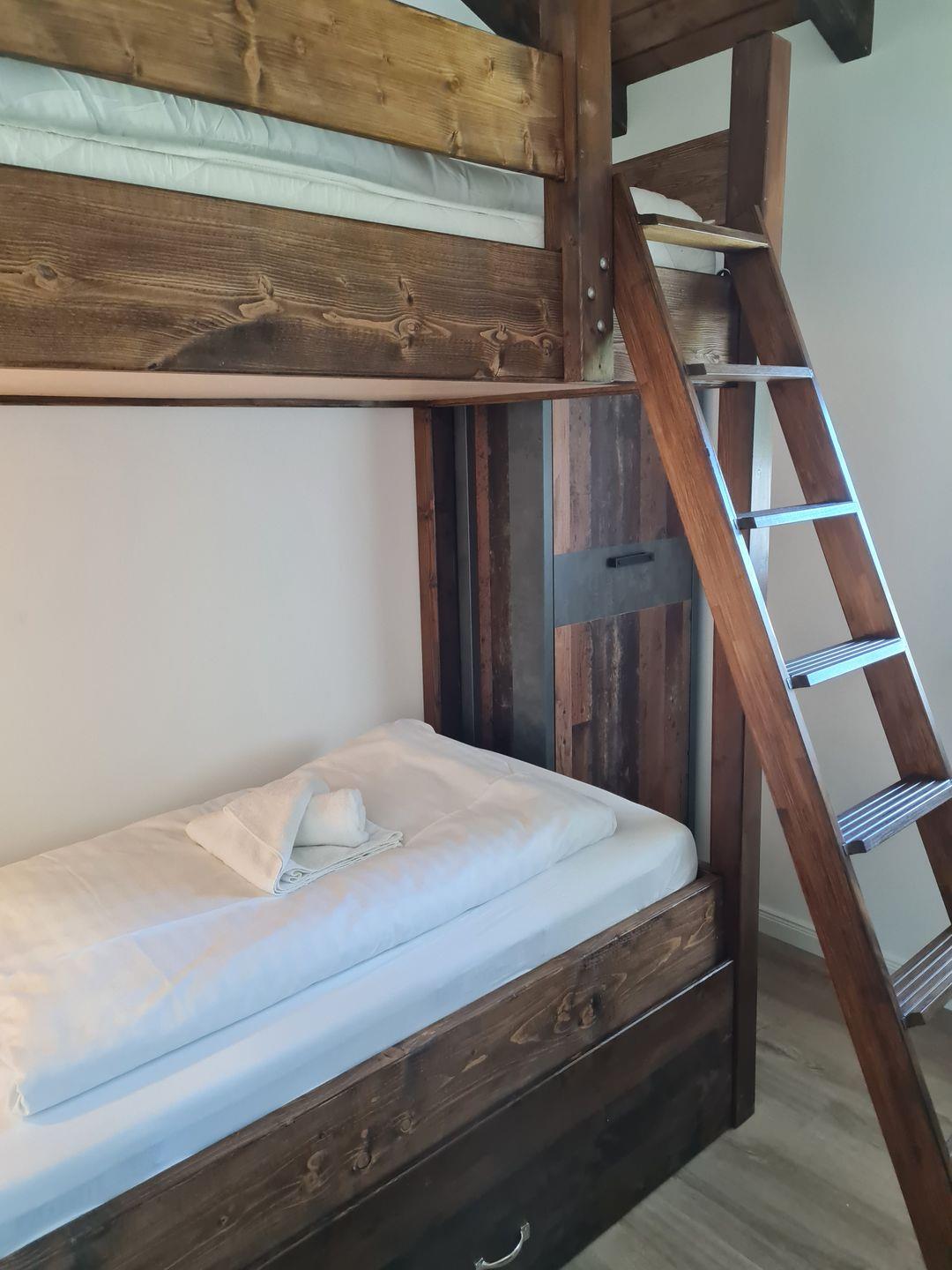 Es bietet viel Platz für 8 Personen. Das Haus verfügt über insgesamt 4 Schlafzimmer. 2 Schlafzimmer verfügen jeweils über ein Boxspringbett, Kleiderschrank und Fernseher. Zwei Schlafzimmer verfügen über jeweils ein Etagenbett mit Schrank, Kommode und Fernseher. Zusätzlich verfügt ein Schlafzimmer über ein Baby Reisebettchen.