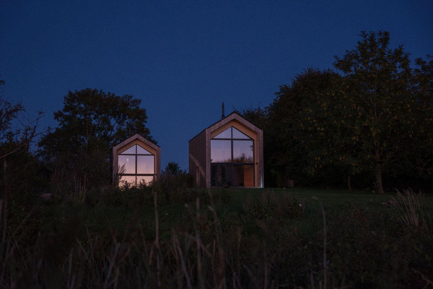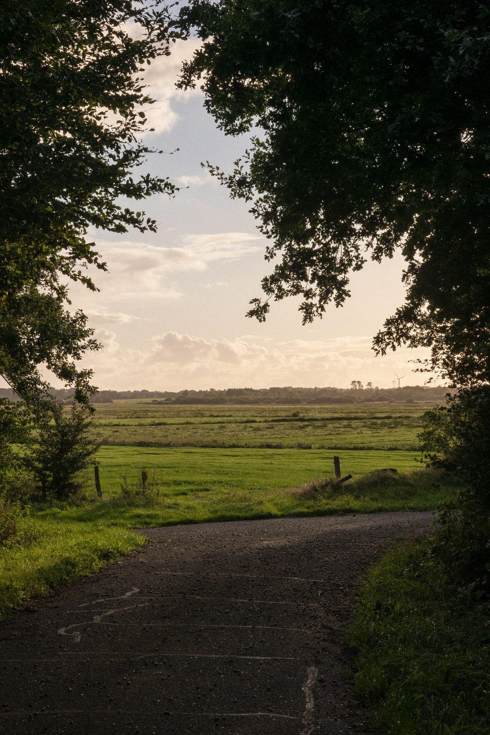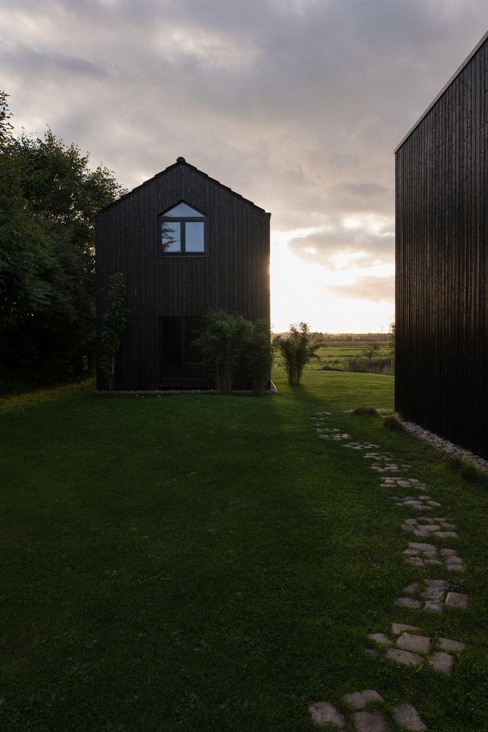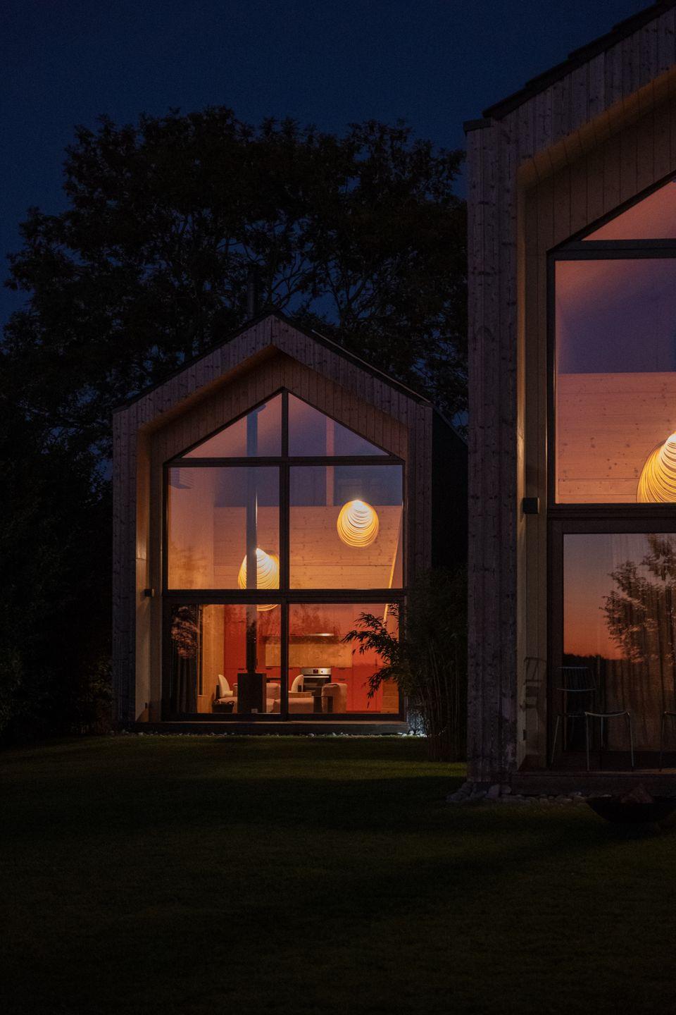 Die sieben Meter hohen Fensterfronten mit Weitblick in Richtung Westen über die Feuchtwiesen des Vogelschutzgebiets lassen Euch jeden Abend auf dem Sofa den Sonnenuntergang genießen, während der Kamin knistert.